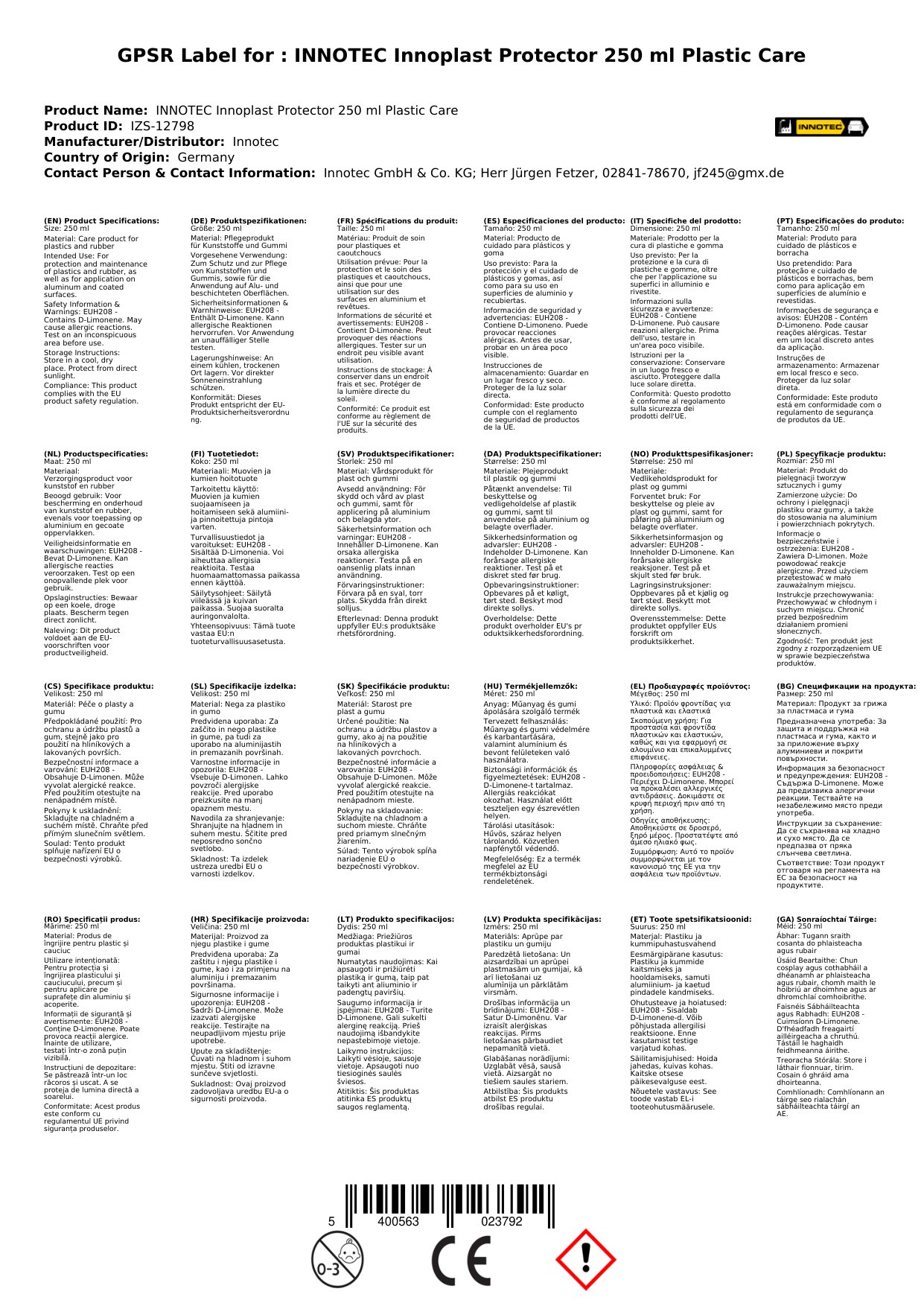 - Innoplast Protector pflegt und schütz nahezu alle Arten von Kunststoffen und Gummis