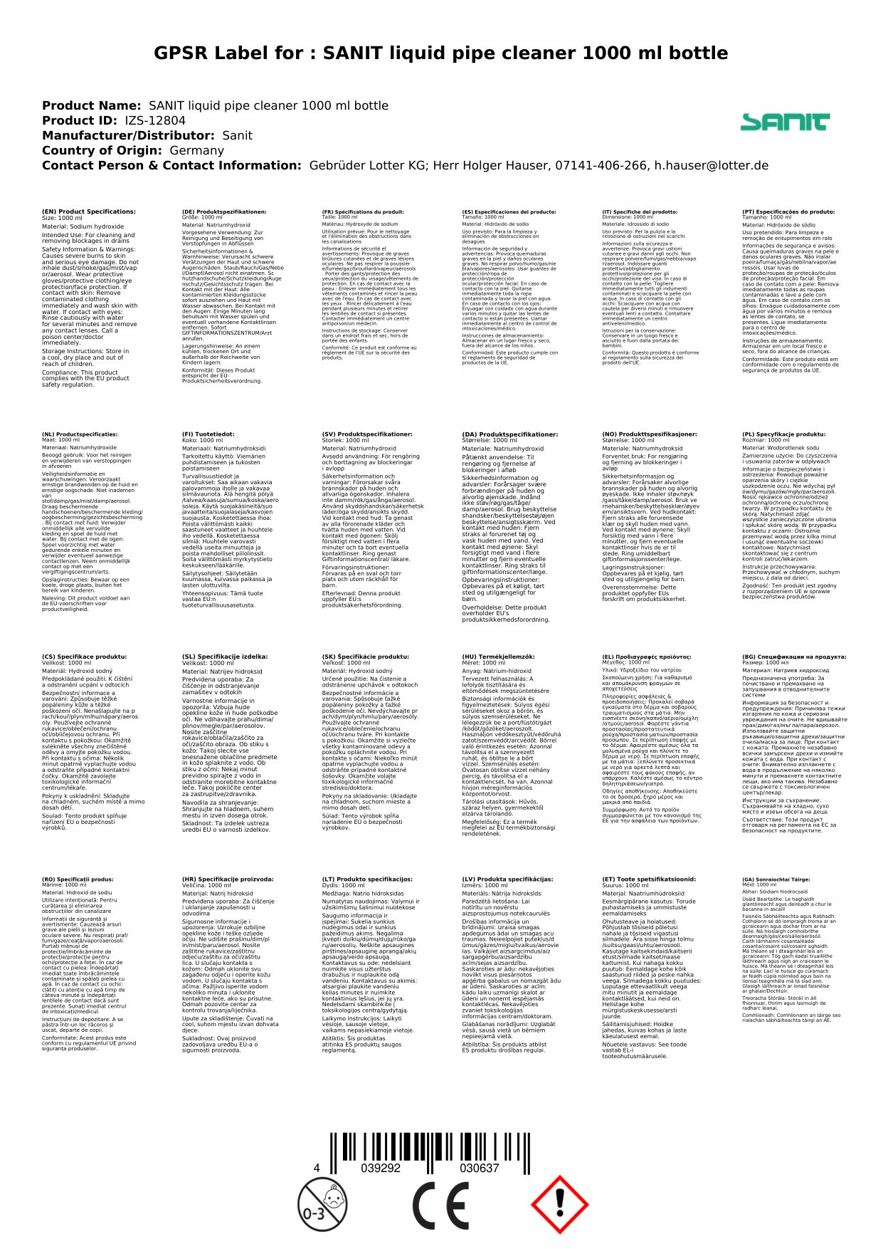 Hochwirksamer Rohrreiniger auf flüssiger Basis. Reinigt und löst Verstopfungen in Abflüssen selbsttätig. Der Sanit RohrReiniger flüssig reinigt selbsttätig jeden Abfluss, wirk hygienisch und beseitigt schlechte Gerüche.