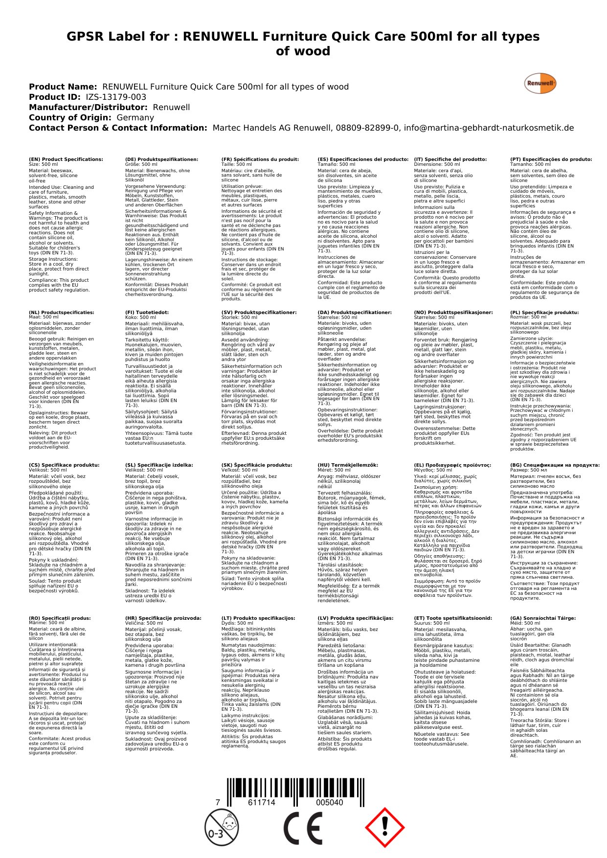 RENUWELL Möbel Schnellpflege mit Bienenwachs 500 ml