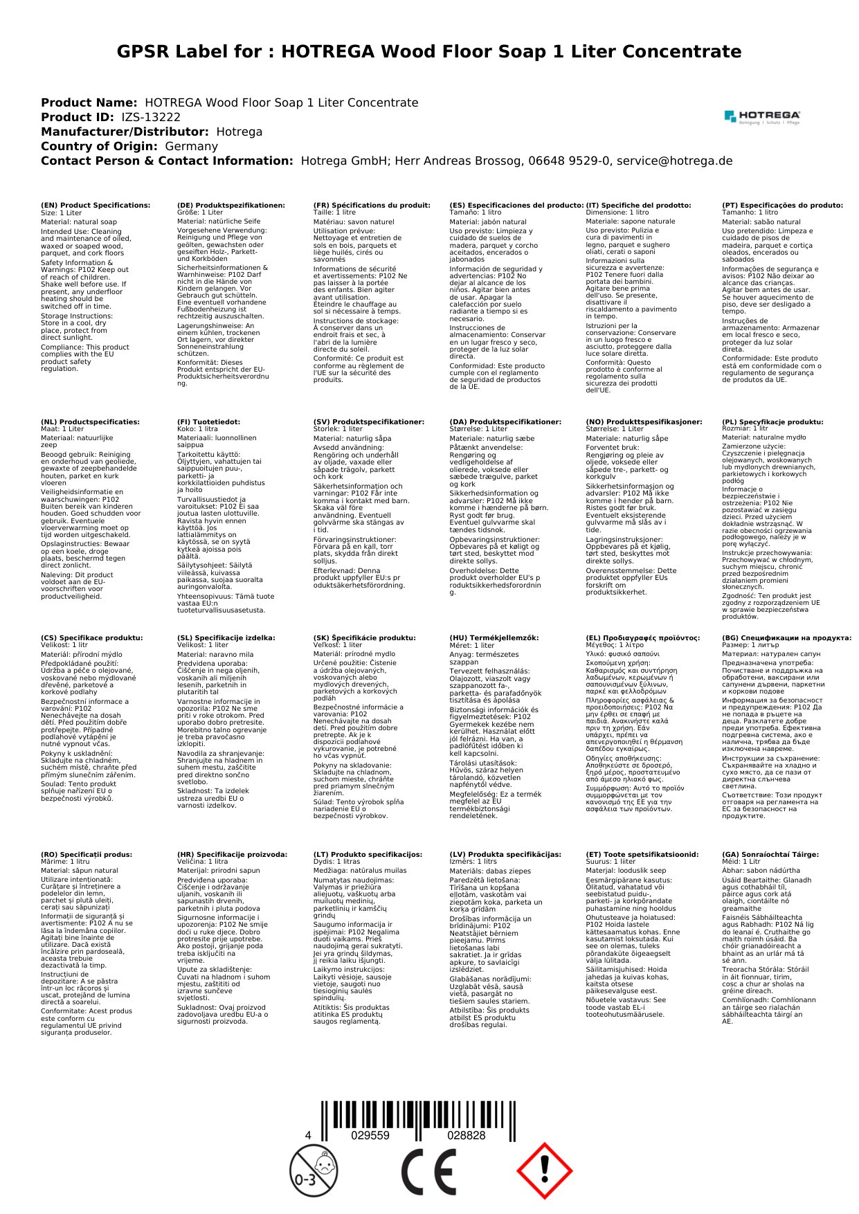 Stellen Sie eine Frage, um mehr über das Produkt zu erfahrenHotrega Holzboden Seife 1 Liter Konzentrat (in der Vierkantflasche)