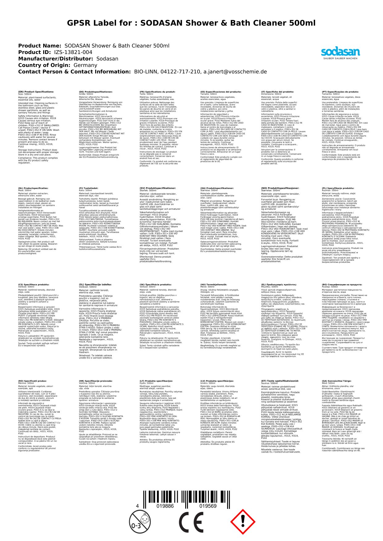 Hygienischer Sprühreiniger zur streifenfreien Reinigung von Oberflächen wie Kacheln, Edelstahl, Duschabtrennungen aus Glas und Kunststoff, Sanitäreinrichtungen und Armaturen.