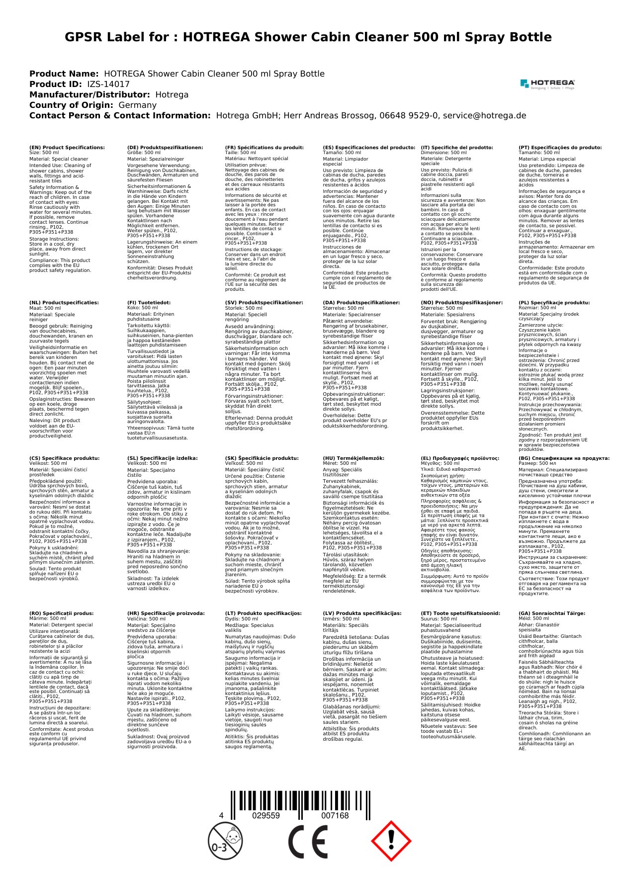 HOTREGA Duschkabinen Reiniger 500 ml Flachsprühflasche