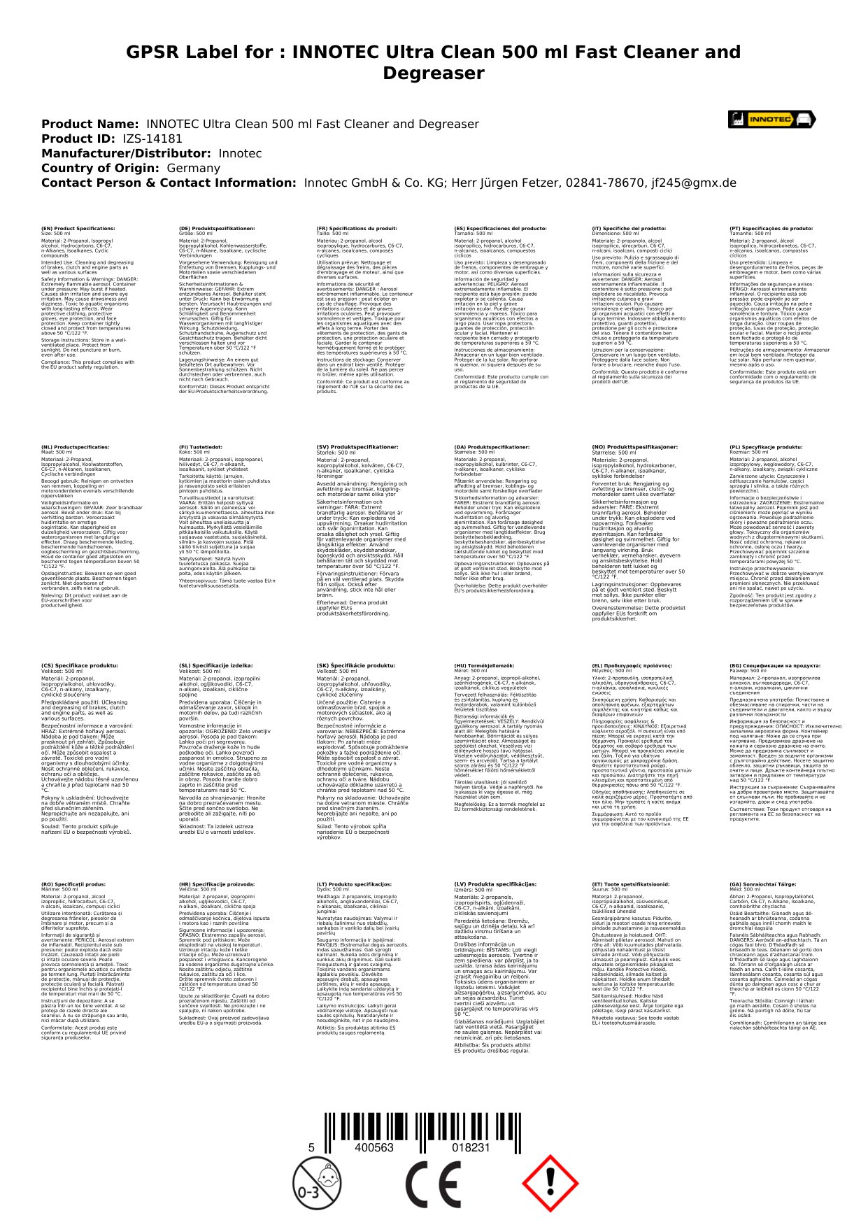 INNOTEC Ultra Clean 500 ml Schnellreiniger & Entfetter