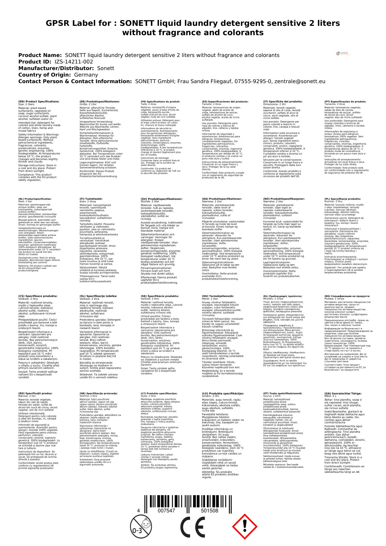 SONETT Waschmittel flüssig sensitiv 2 Liter ohne Duft- und Farbstoffe