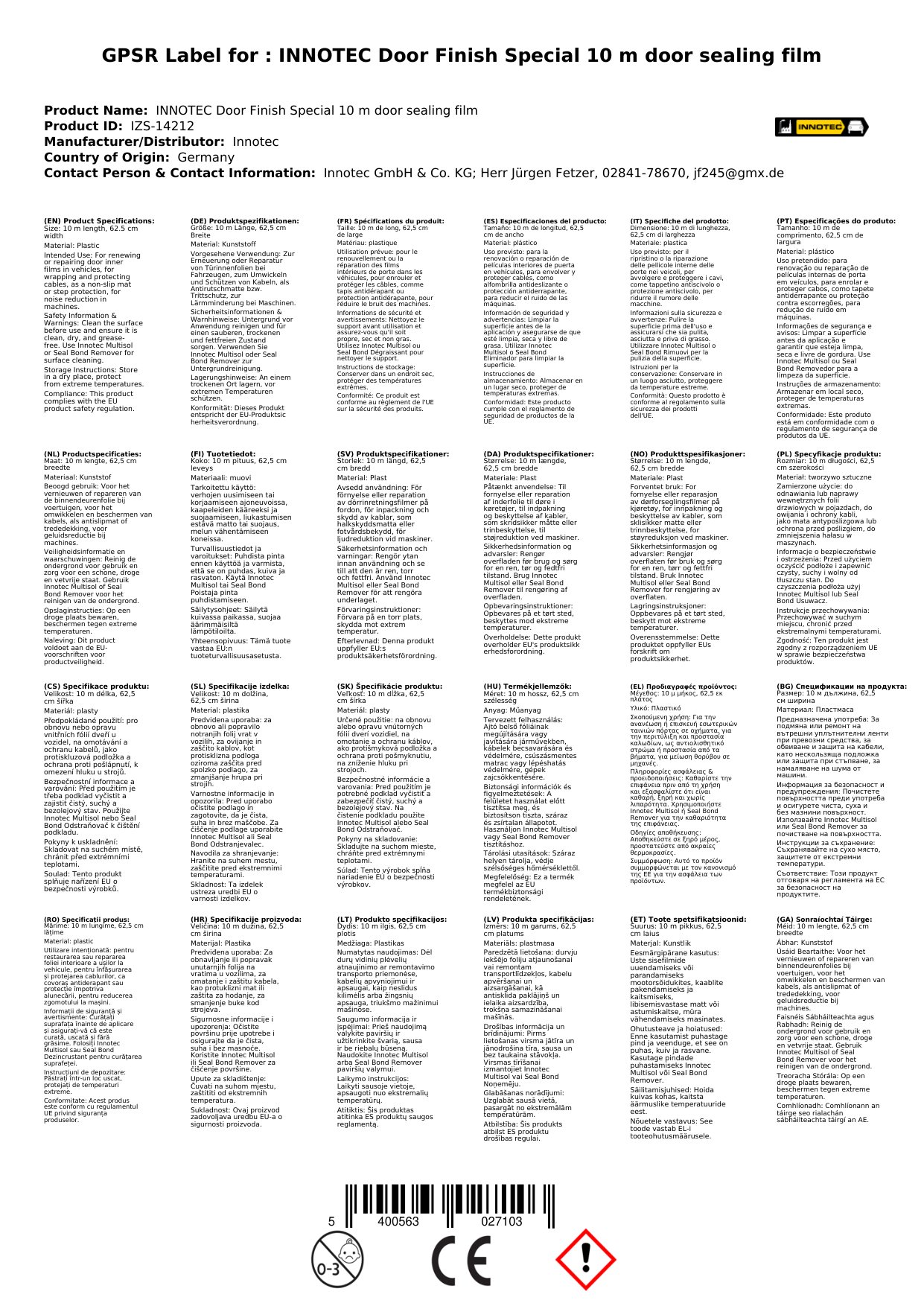 INNOTEC Door Finish Special 10 mtr. Türdichtungsfolie