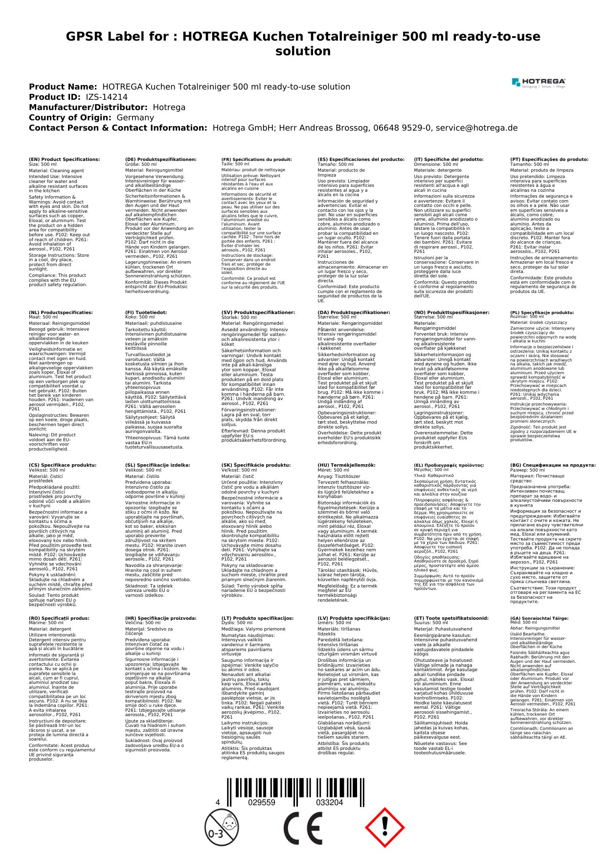 HOTREGA Küchen Totalreiniger 500 ml gebrauchsfertige Lösung