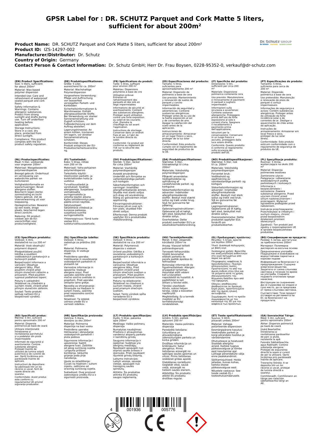 Stellen Sie eine Frage, um mehr über das Produkt zu erfahrenDr. Schutz Parkett und Kork Matt 5 Liter
