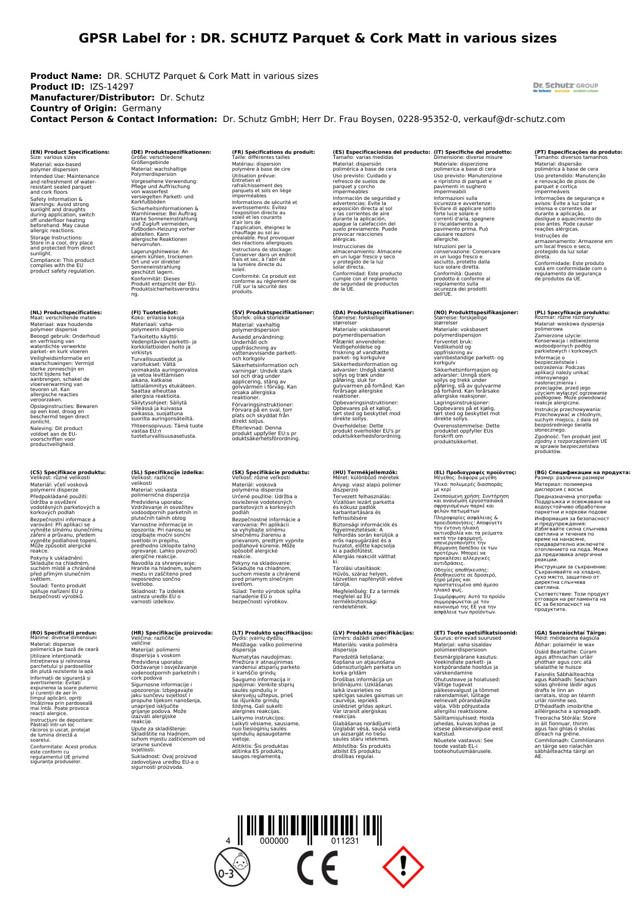 DR. SCHUTZ Parkett & Kork Matt in verschiedenen Größengebinde