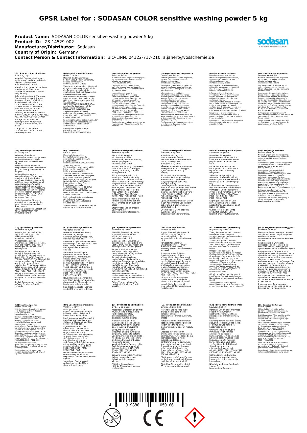 SODASAN COLOR SENSITIV Waschpulver 5 kg Sack