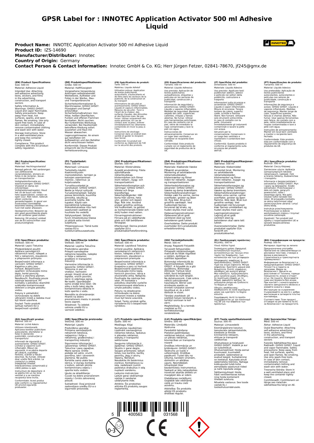 Stellen Sie eine Frage, um mehr über das Produkt zu erfahrenInnotec Application Activator (Haftflüssigkeit) 500 ml
