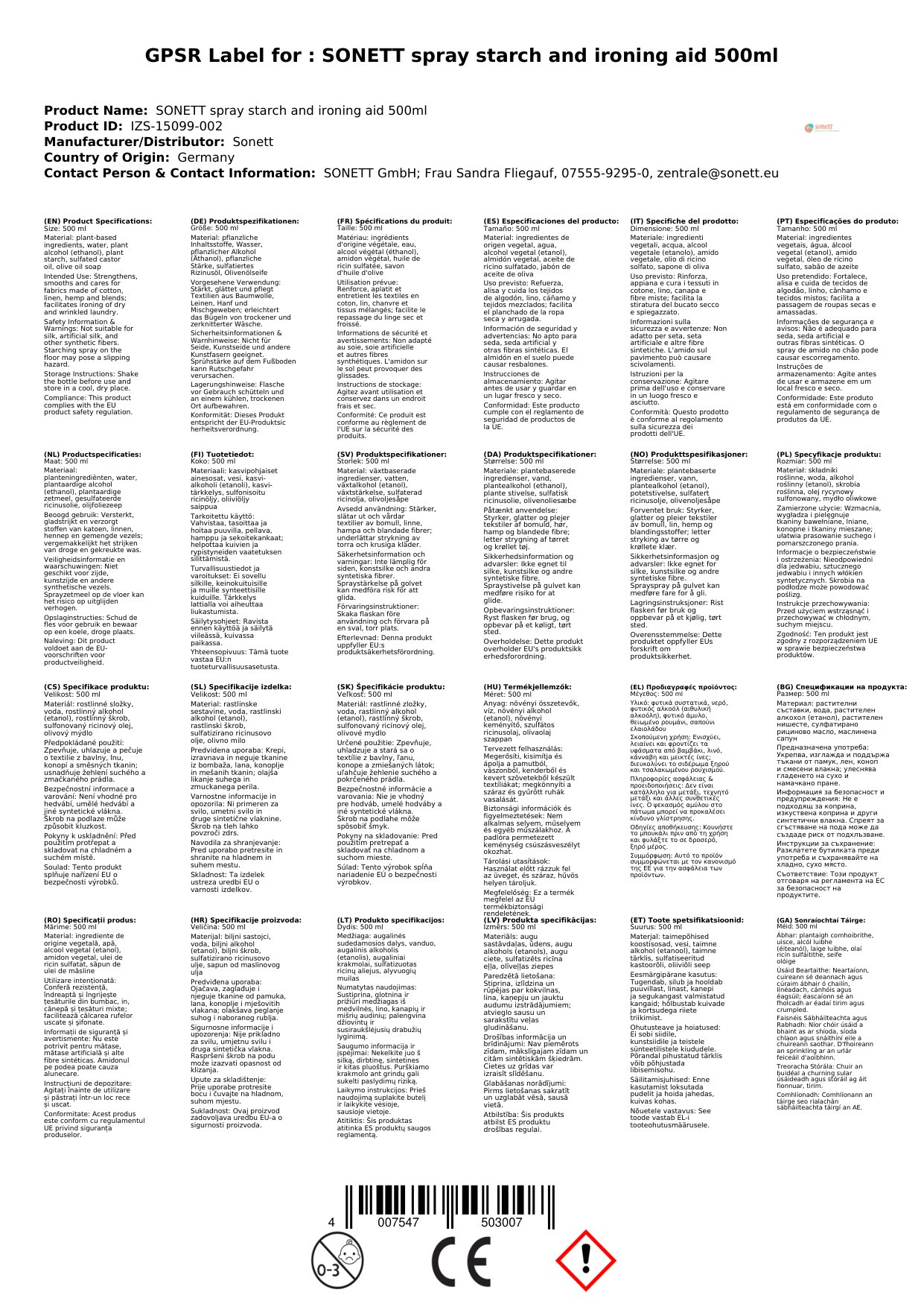 Stellen Sie eine Frage, um mehr über das Produkt zu erfahrenSonett Sprühstärke und Bügelhilfe 500 ml