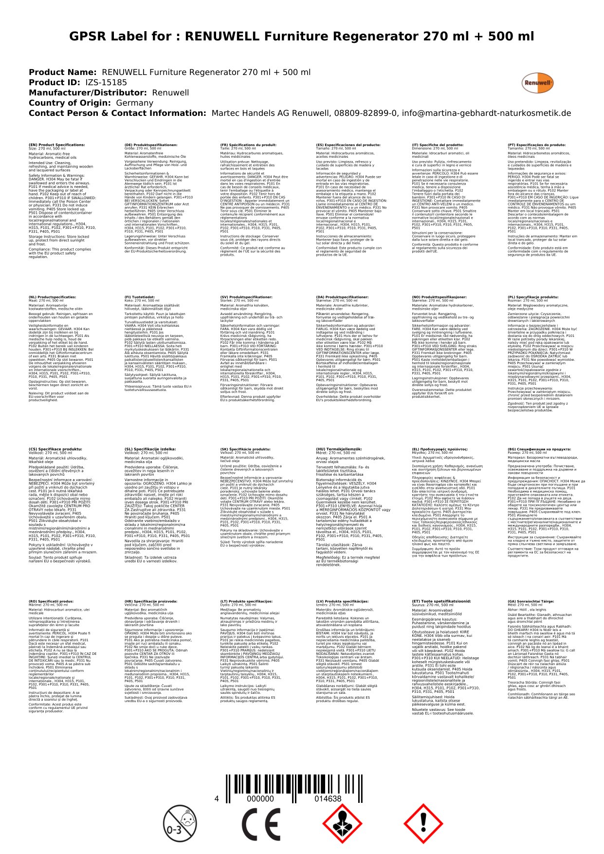 RENUWELL Möbel Regenerator 270 ml + 500 ml
