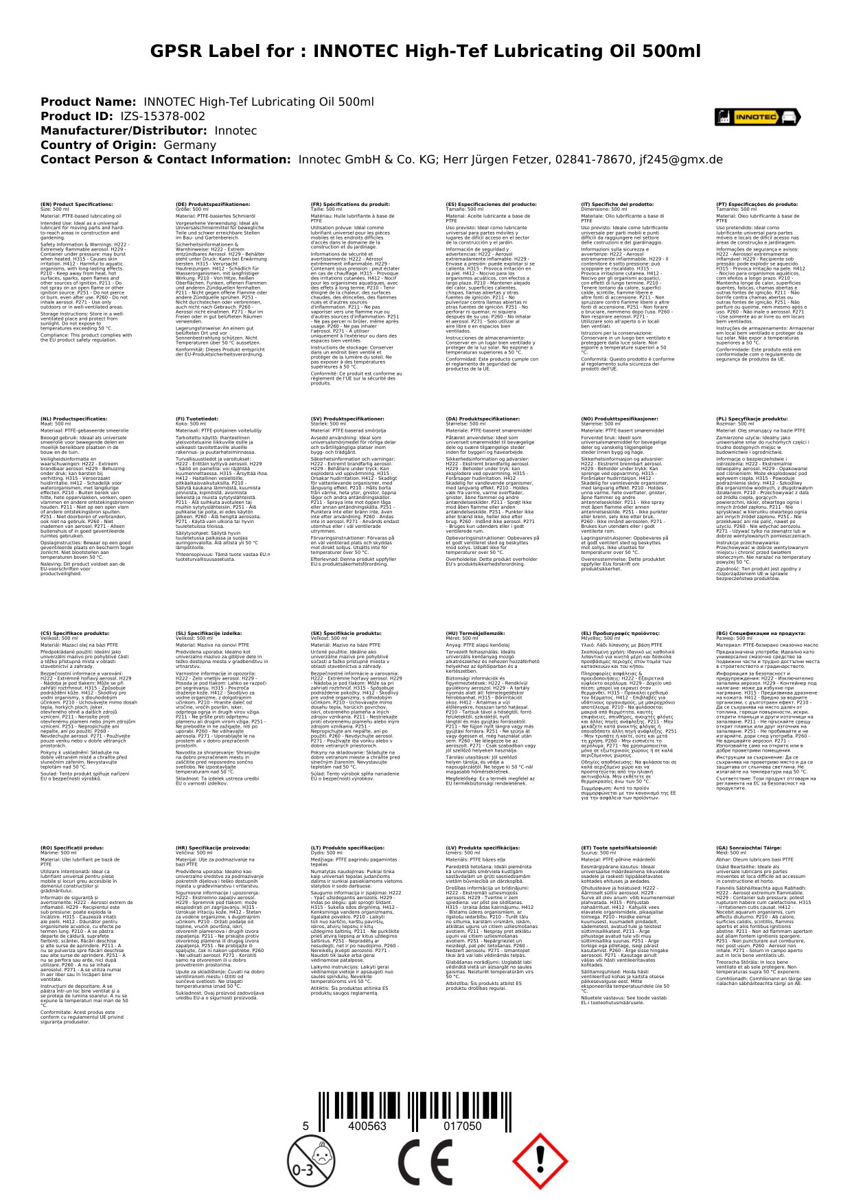Stellen Sie eine Frage, um mehr über das Produkt zu erfahrenInnotec HighTef Oil Schmieröl 500 ml