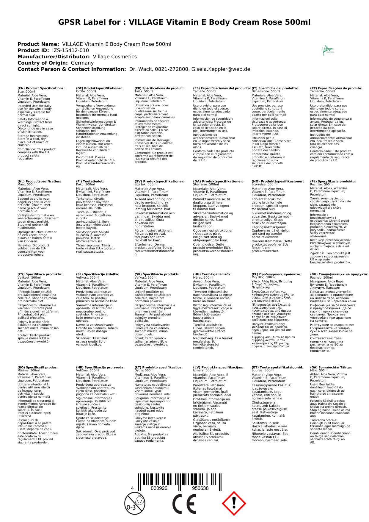 VILLAGE VITAMIN E Rose 500 ml Bodycream Körperlotion