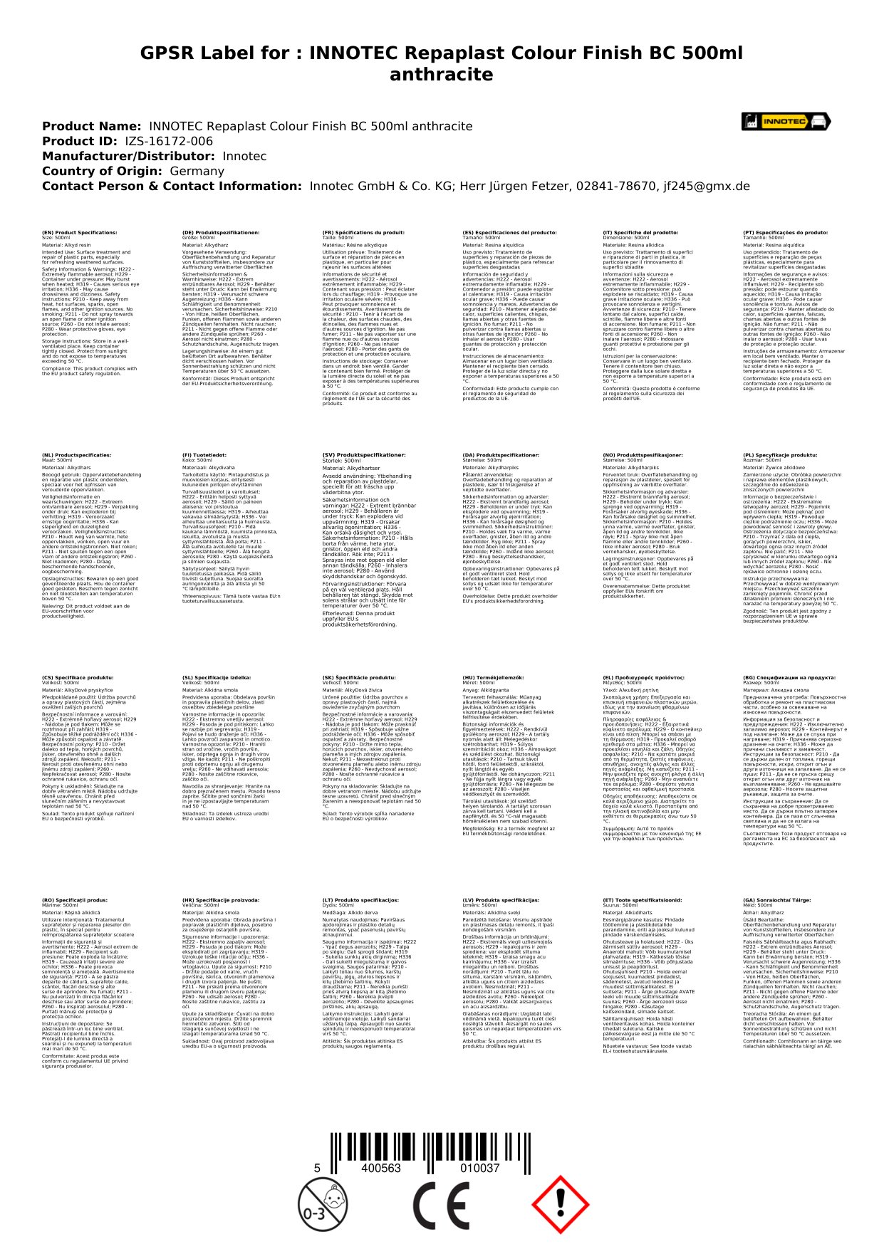 Stellen Sie eine Frage, um mehr über das Produkt zu erfahrenInnotec Repaplast Colour Finish BC (Kunststofflack) 500 ml anthracite