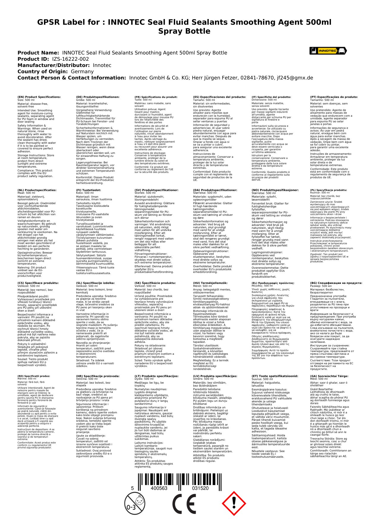 Stellen Sie eine Frage, um mehr über das Produkt zu erfahrenInnotec Seal Fluid lösungsmittelfreies Glättmittel 500 ml