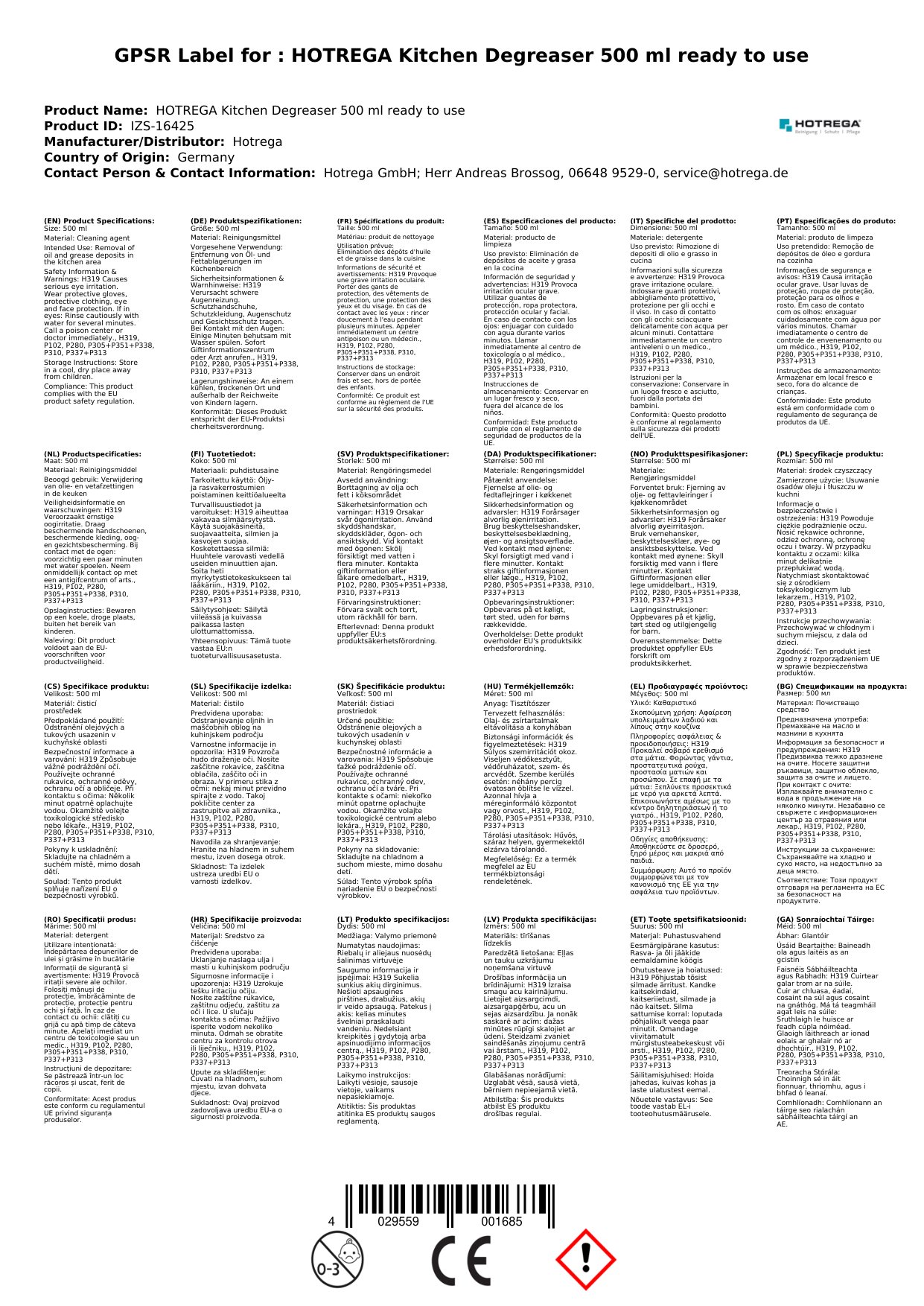 Stellen Sie eine Frage, um mehr über das Produkt zu erfahrenHotrega Küchen Fettlöser 500 ml gebrauchsfertig