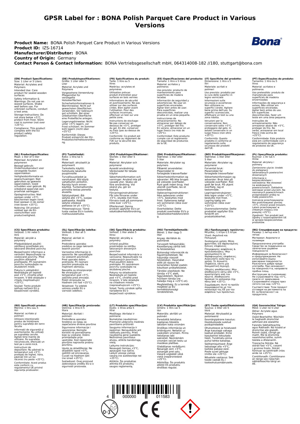 | Brand | BONA |