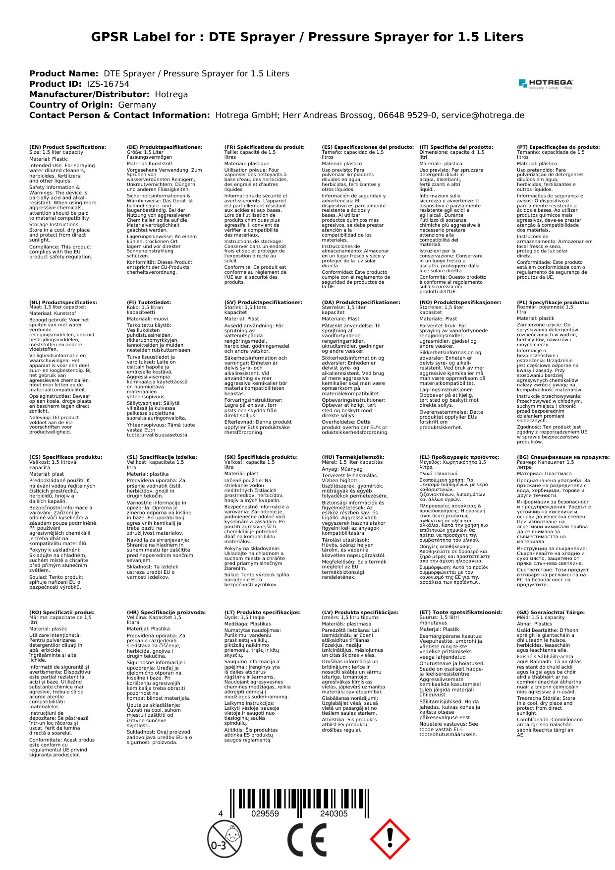 Stellen Sie eine Frage, um mehr über das Produkt zu erfahrenHotrega Drucksprühgerät für 1,5 Liter Fassungsvermögen