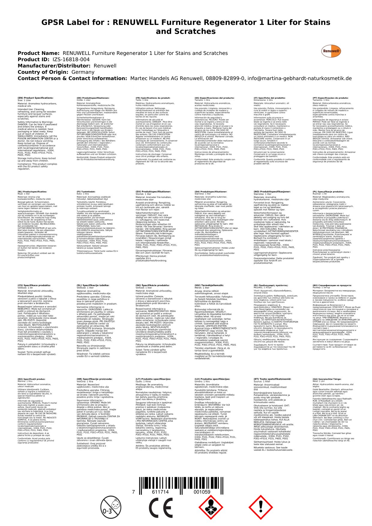 Stellen Sie eine Frage, um mehr über das Produkt zu erfahrenRENUWELL Möbel Regenerator 1 Liter