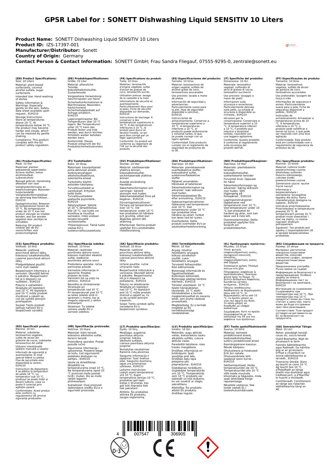 SONETT Geschirrspülmittel SENSITIV 10 Liter
