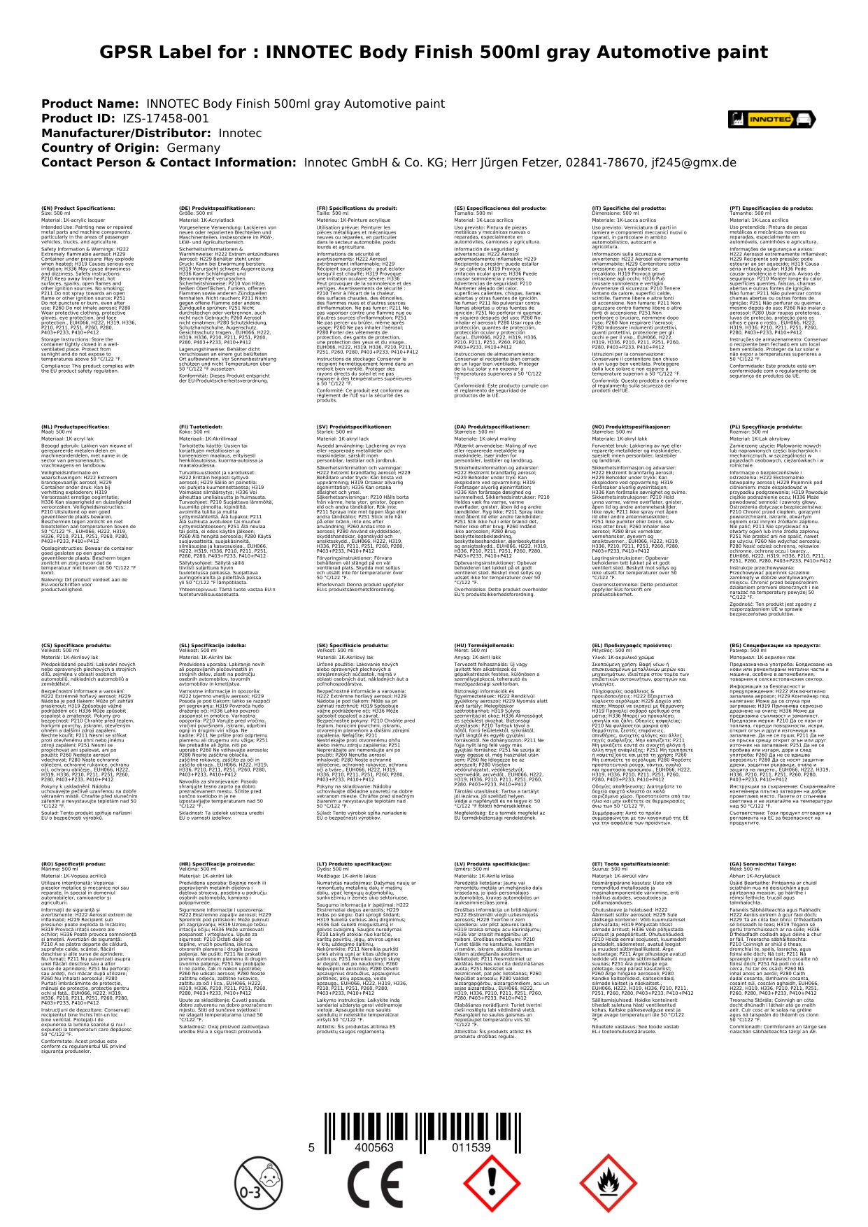 Stellen Sie eine Frage, um mehr über das Produkt zu erfahrenInnotec Body Finish - 1K Acrylatlack500 ml - grau