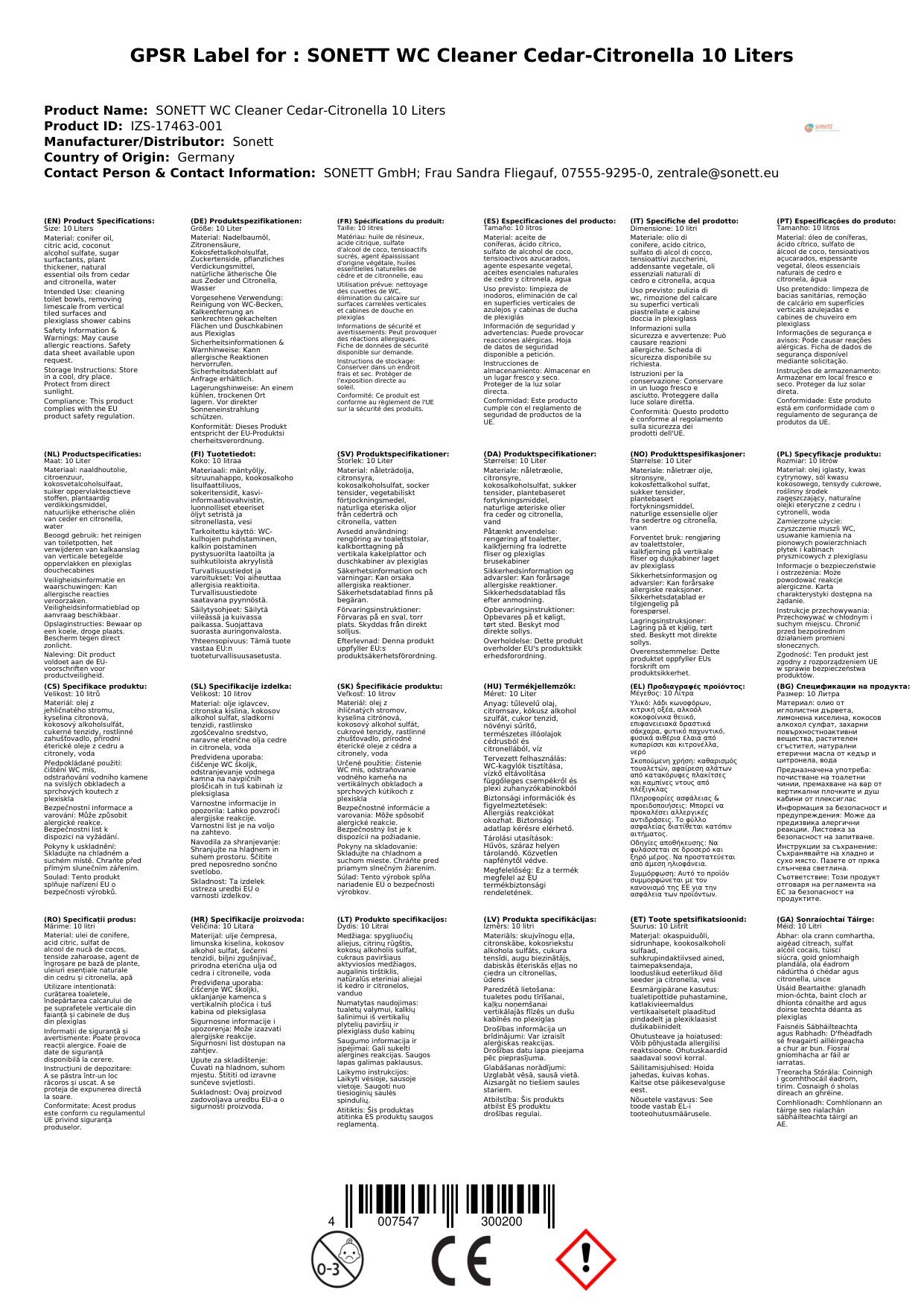 SONETT WC Reiniger 10 Liter Zeder Citronella