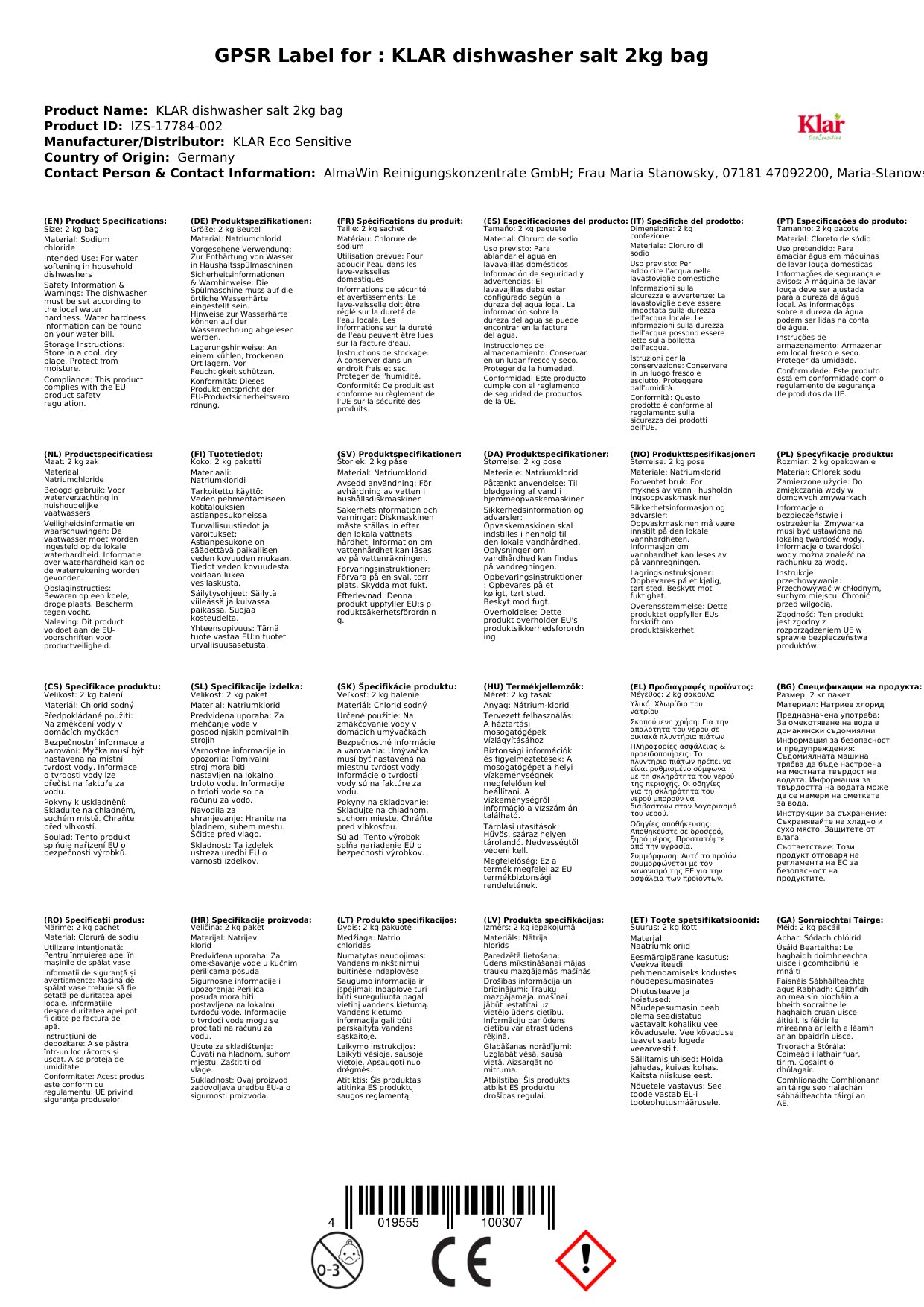 Das Klar Spülmaschinen-Salz ist vegan und durch Ecogarantie ökozertifiziert. Das Produkt ist dermatologisch erfolgreich getestet. Dies garantiert Dir eine gute Hautfreundlichkeit.