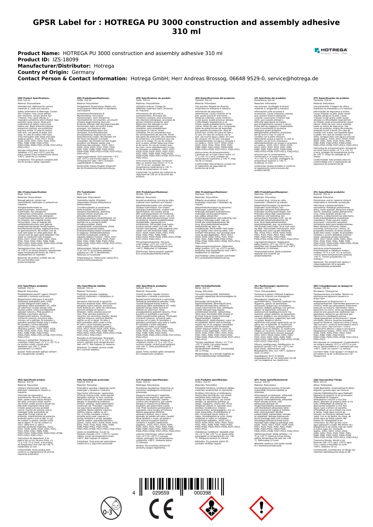 HOTREGA PU 3000 Konstruktions- und Montagekleber 310 ml