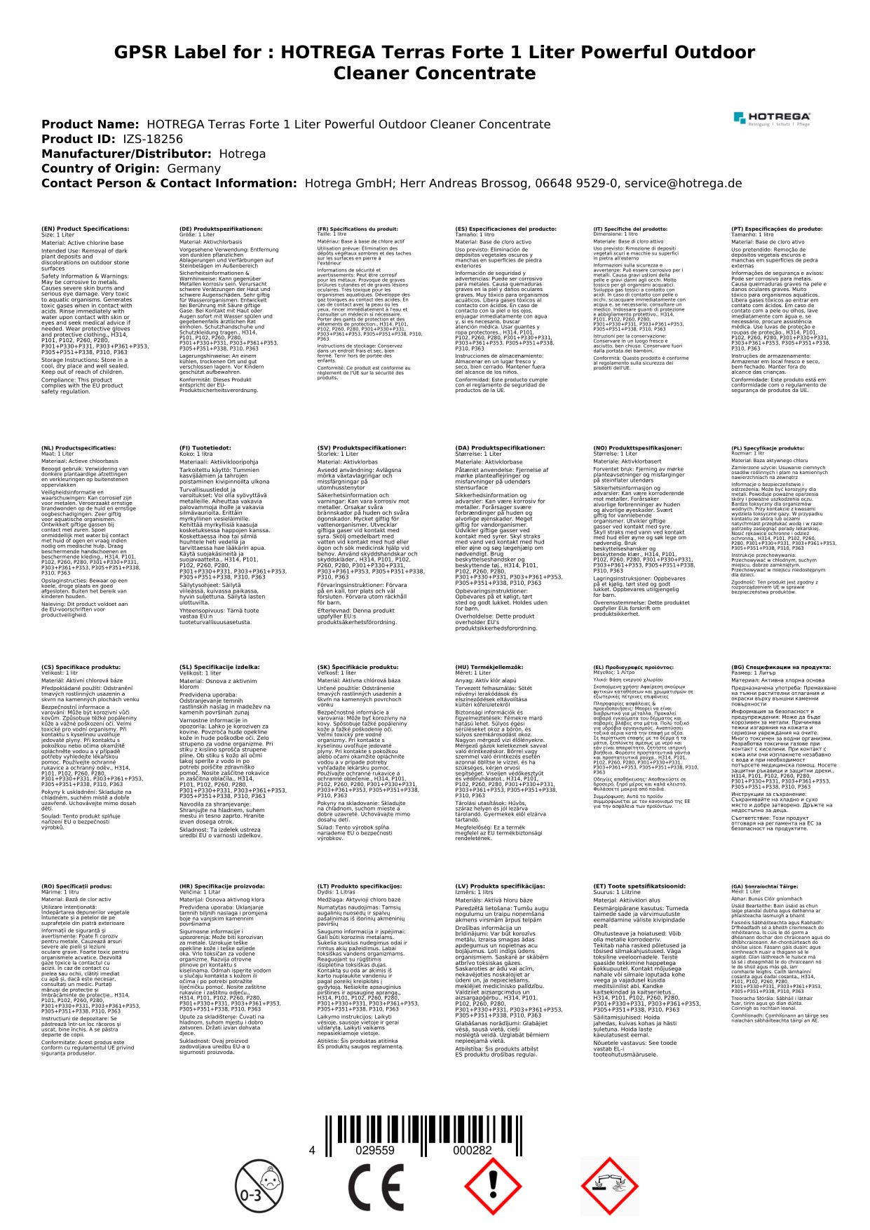 Stellen Sie eine Frage, um mehr über das Produkt zu erfahrenHotrega Terras Forte 1 Liter Kraftvoller Außenreiniger Konzentrat
