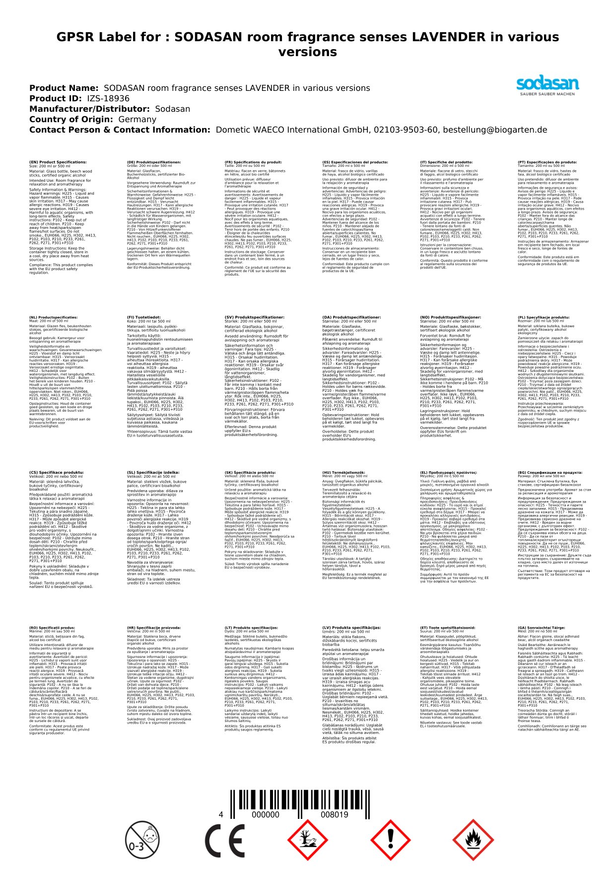 Kennzeichnungsauslösende Komponente: Ethanol 96%tig, ätherisches Öl