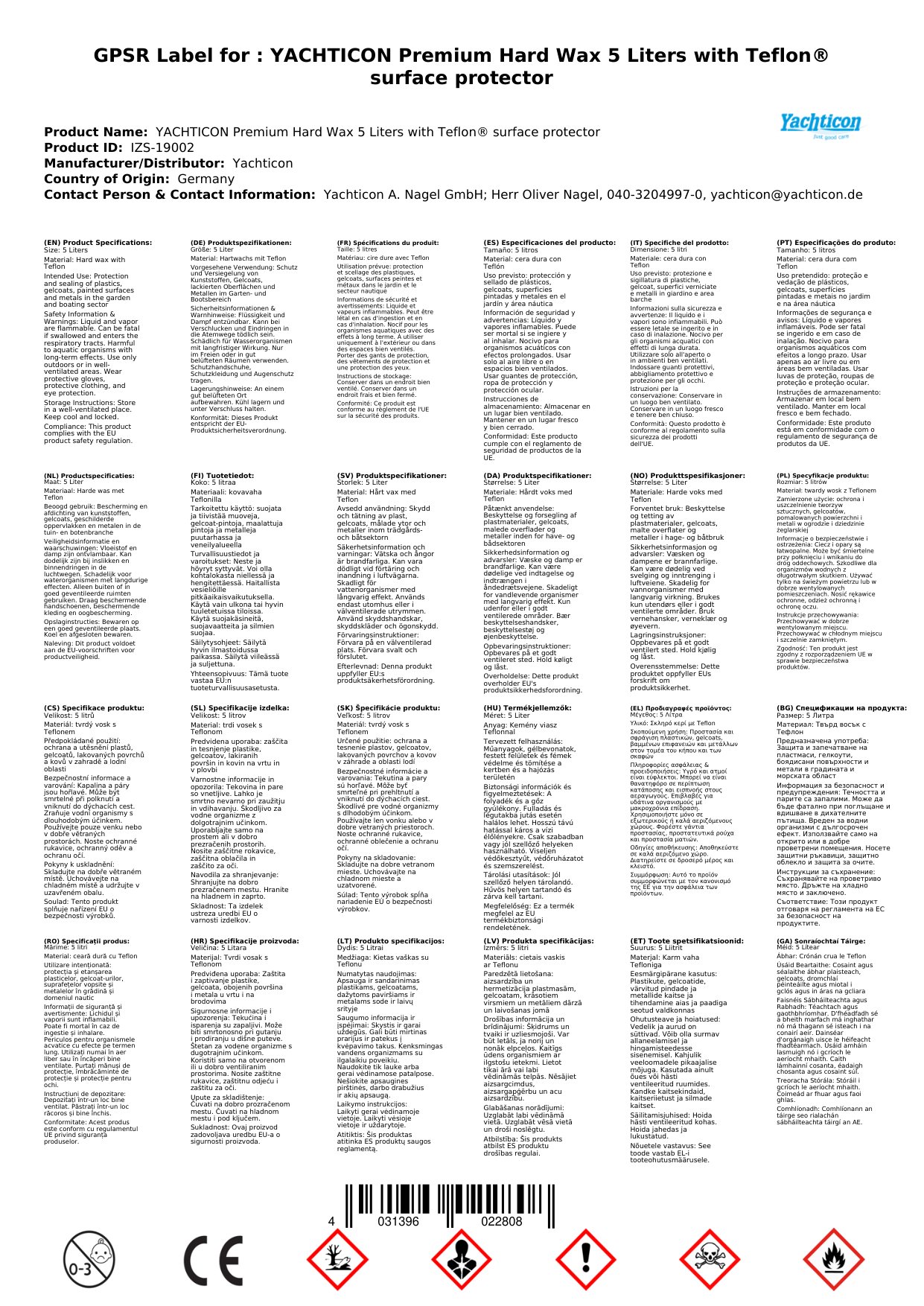 Stellen Sie eine Frage, um mehr über das Produkt zu erfahrenYachticon Premium Hard Wax mit Teflon surface protector 5 Liter
