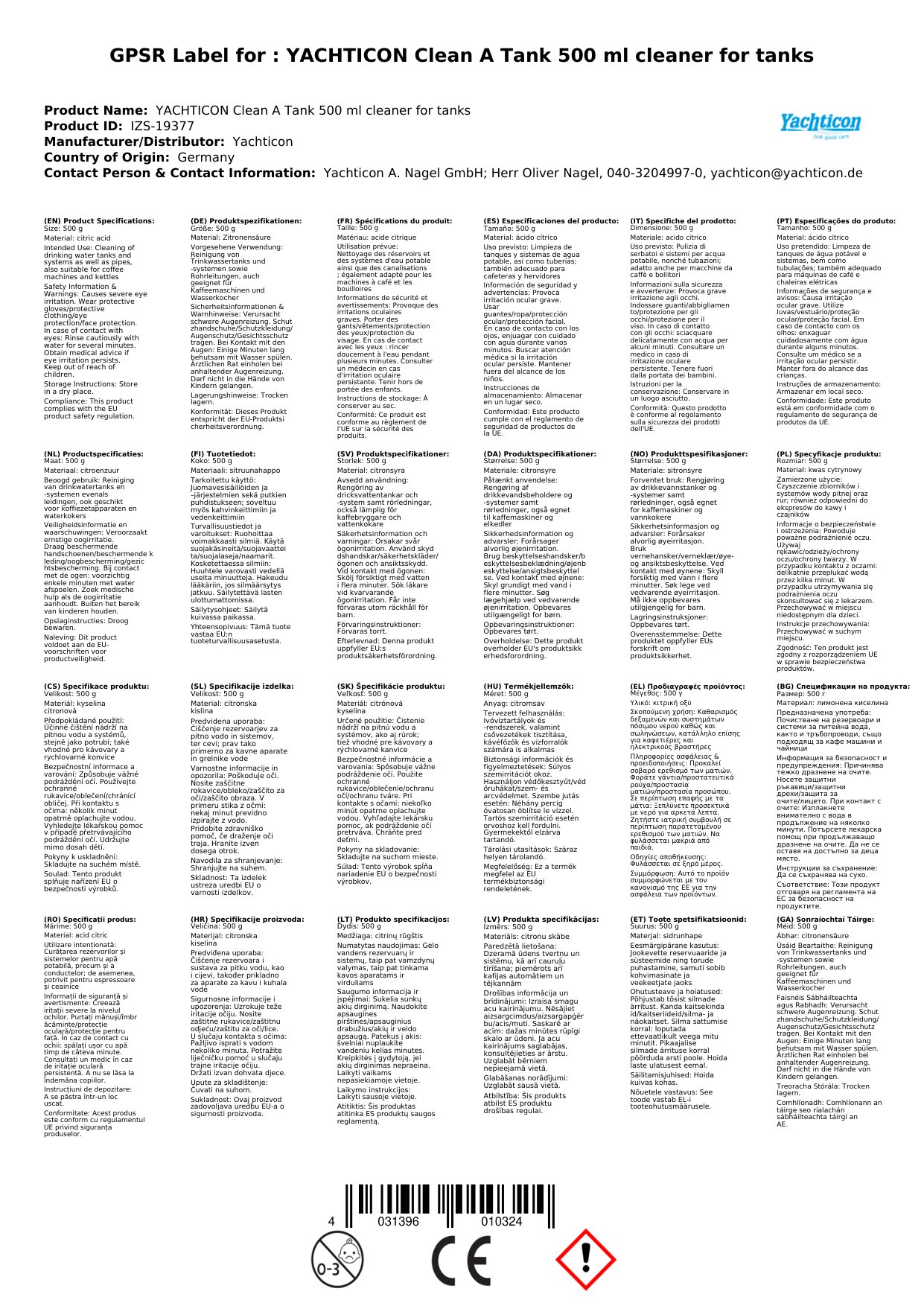 Yachticon Clean A Tank mit Zitronensäure 500g (Tankreiniger)