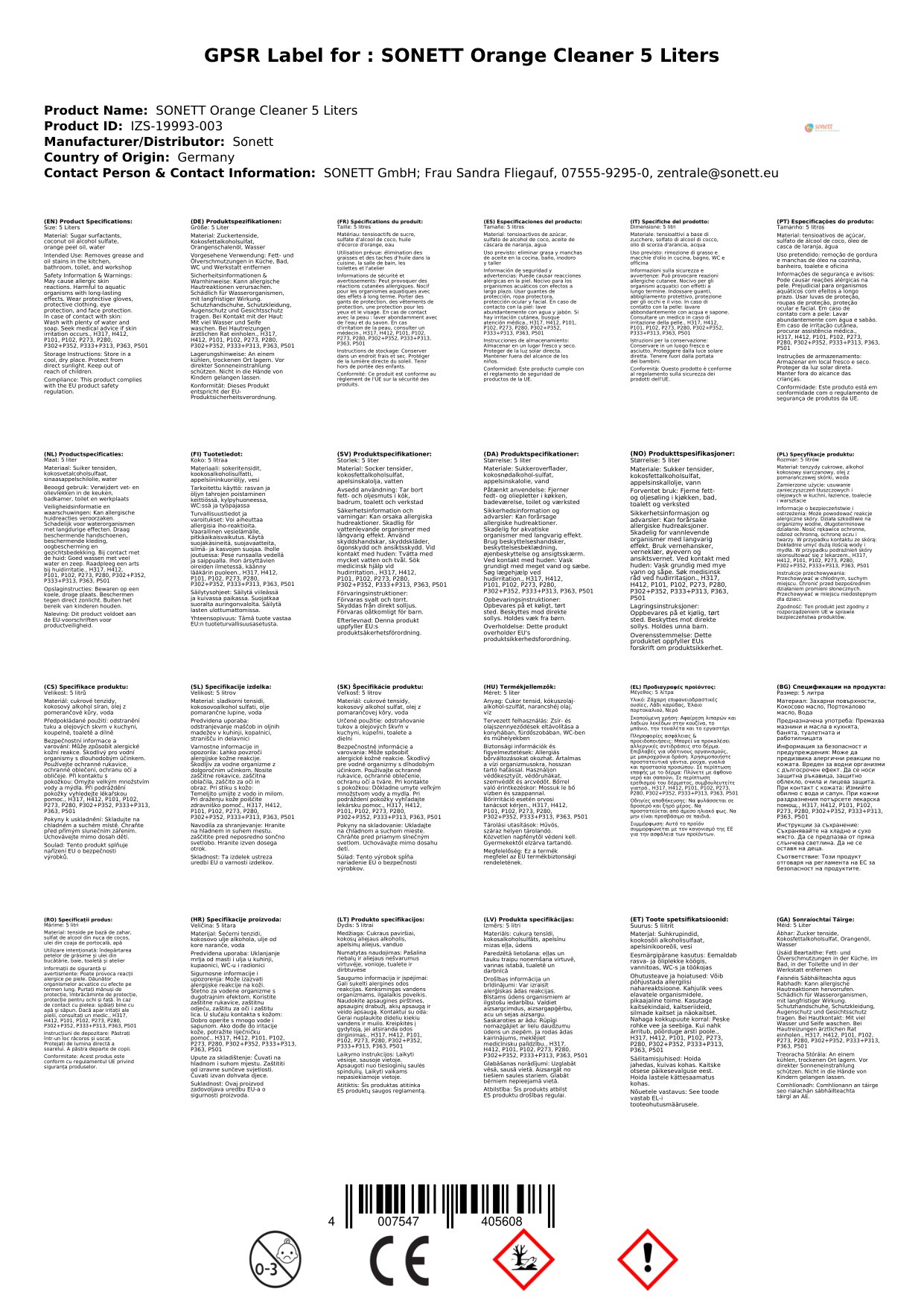 SONETT Orangen Kraftreiniger 5 Liter