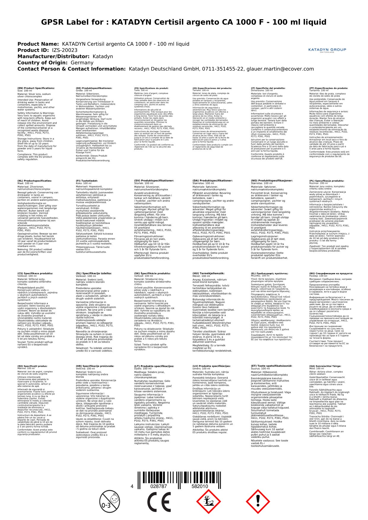 KATADYN Certisil argento CA 1000 F - 100 ml flüssig ohne Chlor - GHS09 KATADYN Certisil argento CA 1000 F - 100 ml flüssig ohne Chlor - GHS07