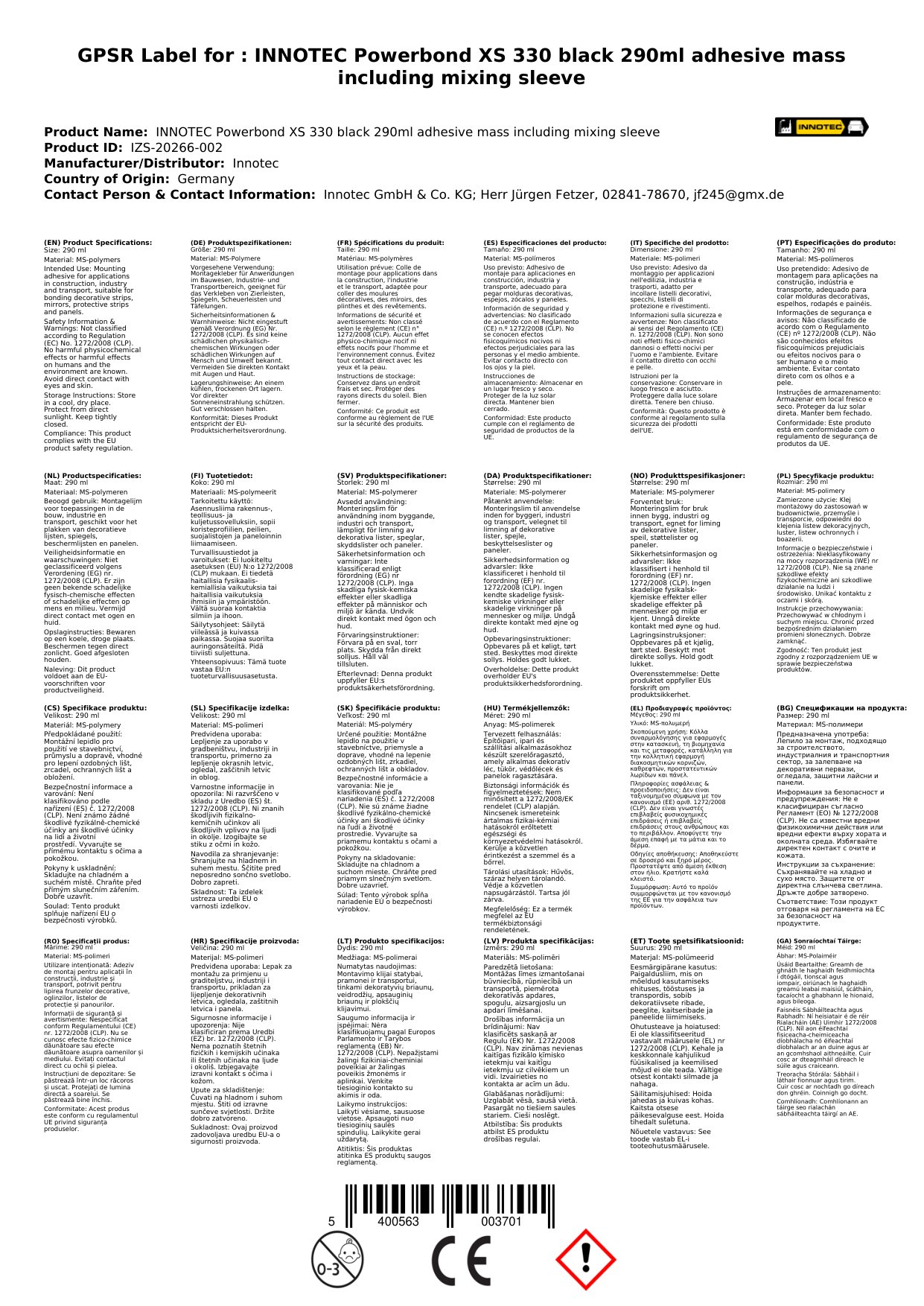 Stellen Sie eine Frage, um mehr über das Produkt zu erfahrenInnotec Powerbond XS 330 Montagekleber 290 ml schwarz incl. Mischhülse