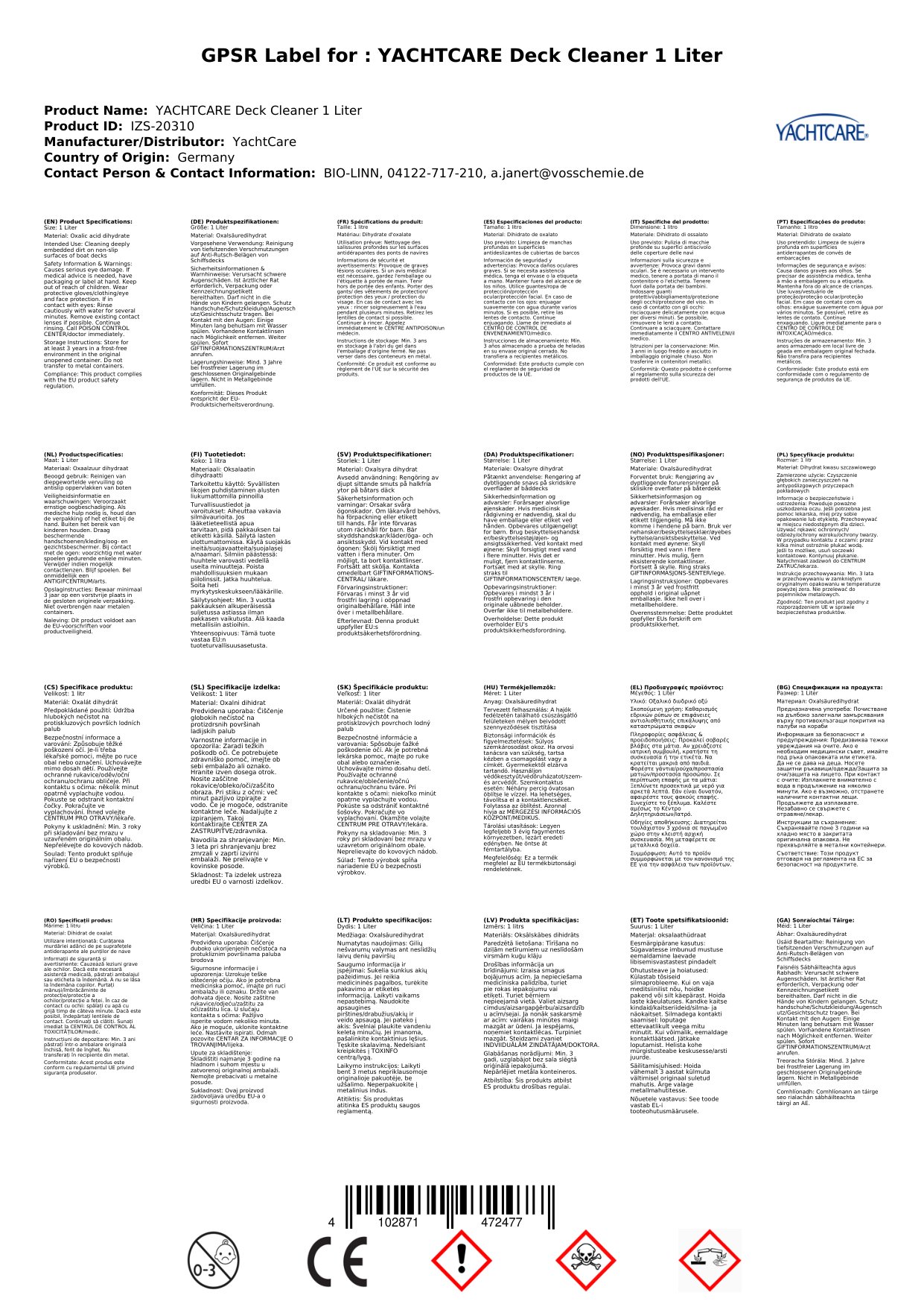 1. Yachtcare DECK CLEANER vor Gebrauch gründlich schütteln