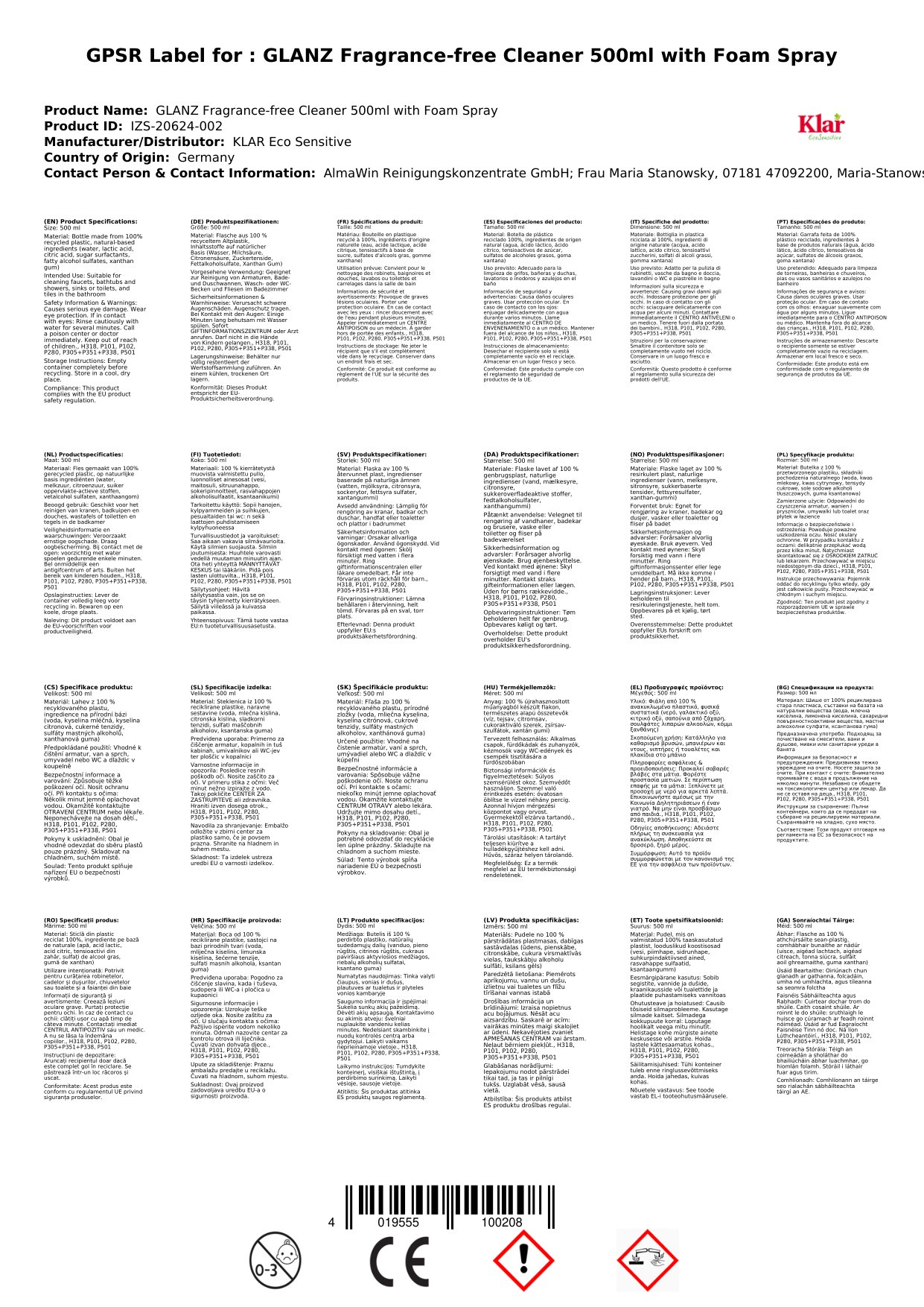 KLAR Badreiniger parfümfrei 500ml ohne Duft mit Schaumsprayer