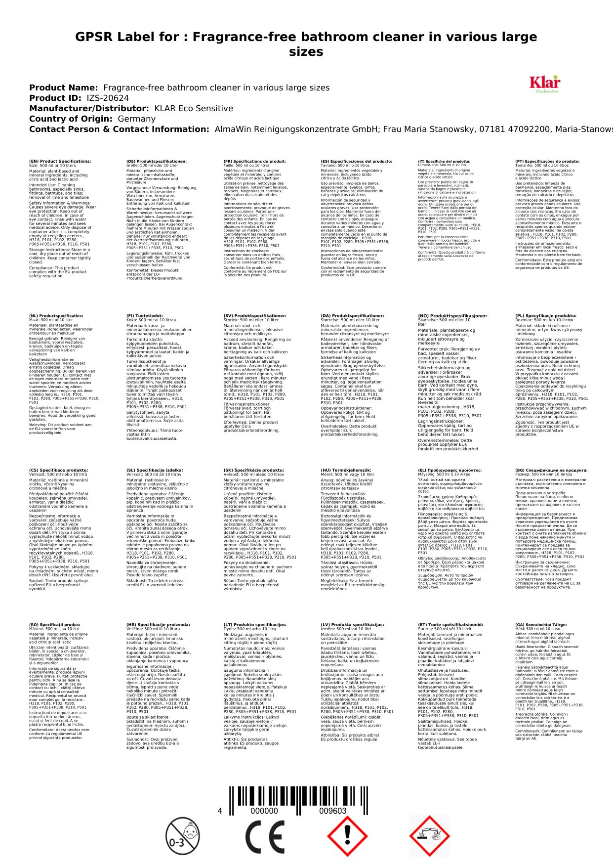 KLAR Badreiniger parfümfrei ohne Duft in verschiedenen Größengebinden
