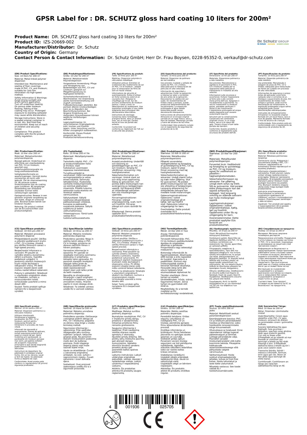 DR. SCHUTZ Selbstglanz Hartbeschichtung glänzend 10 Liter für 200m²