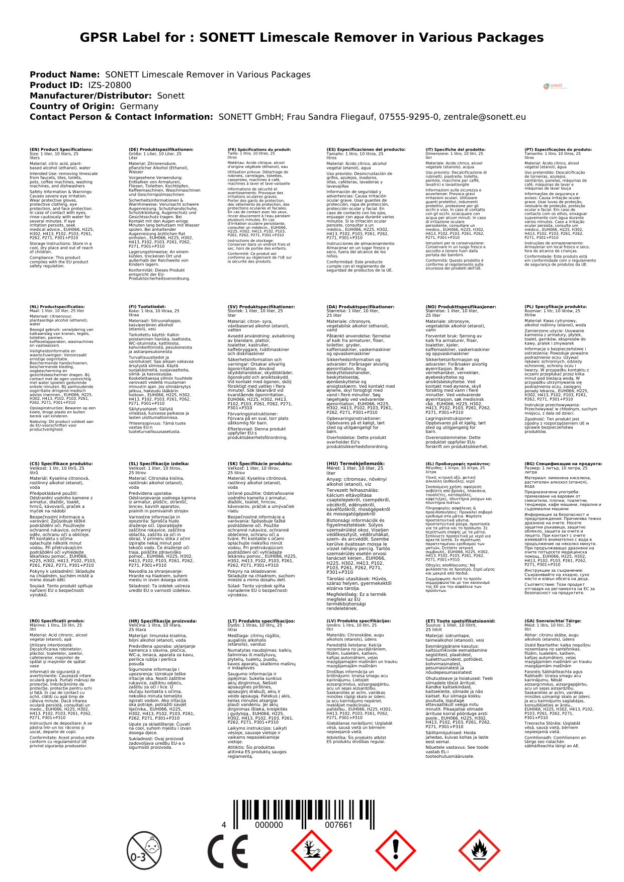 SONETT Kalklöser in verschiedenen Größengebinden
