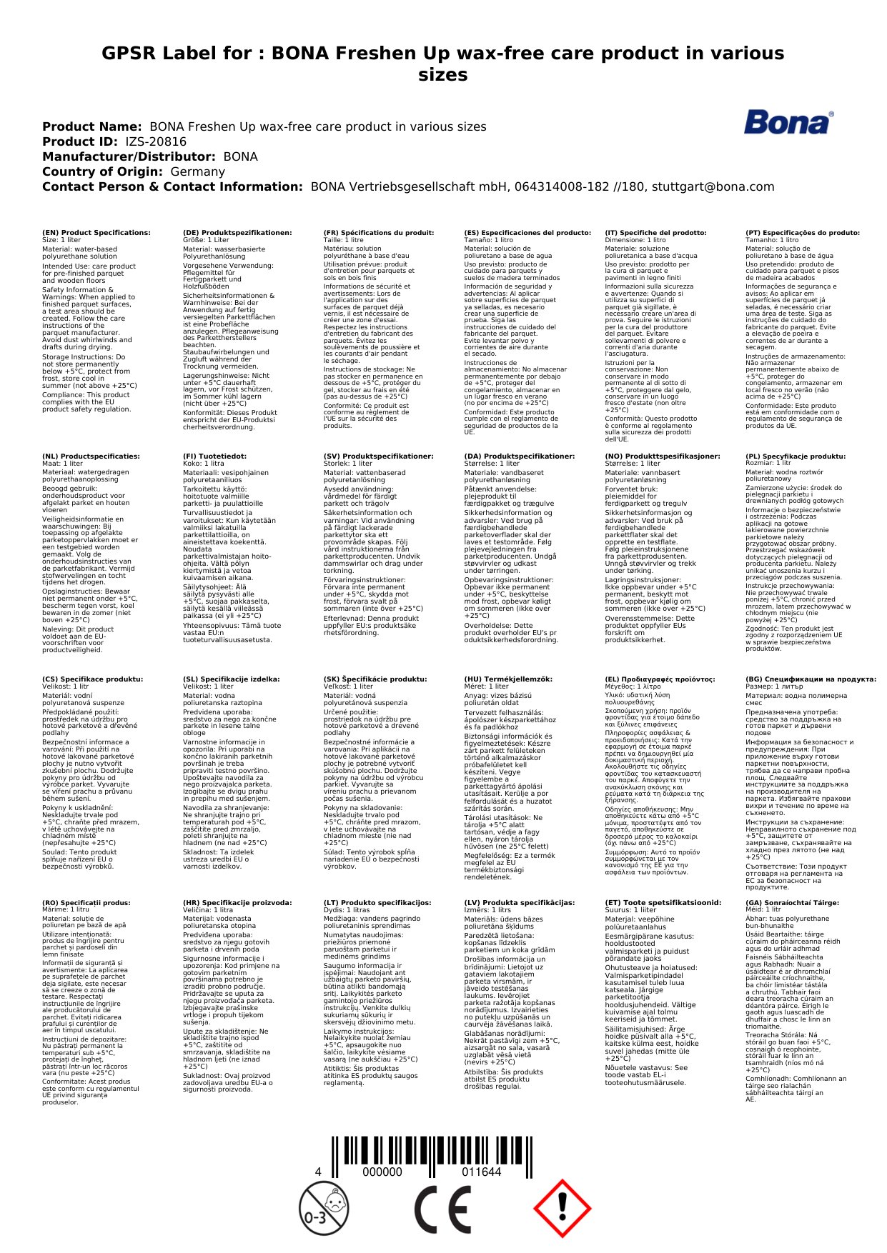 | Brand | BONA |