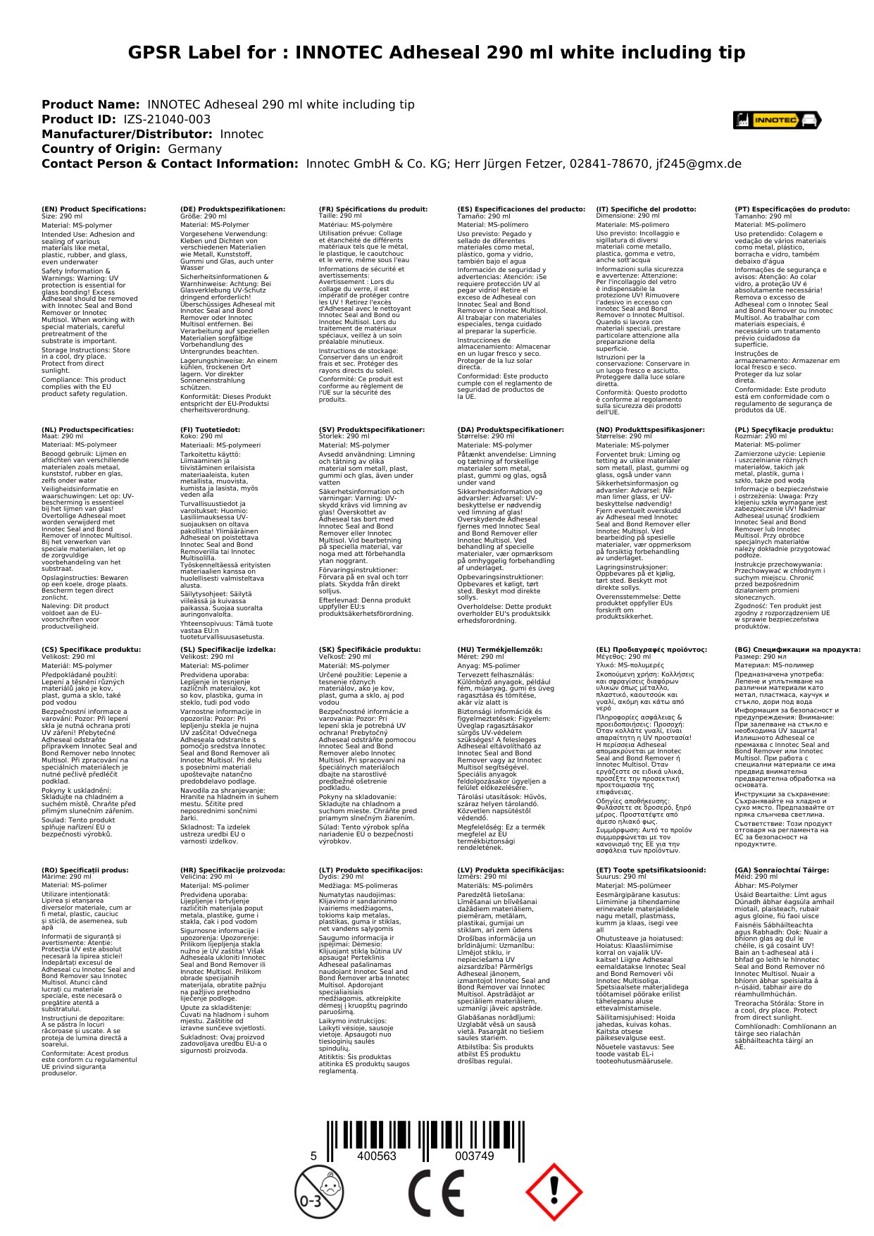 Stellen Sie eine Frage, um mehr über das Produkt zu erfahrenInnotec Adheseal 290 ml Kartusche weiß
