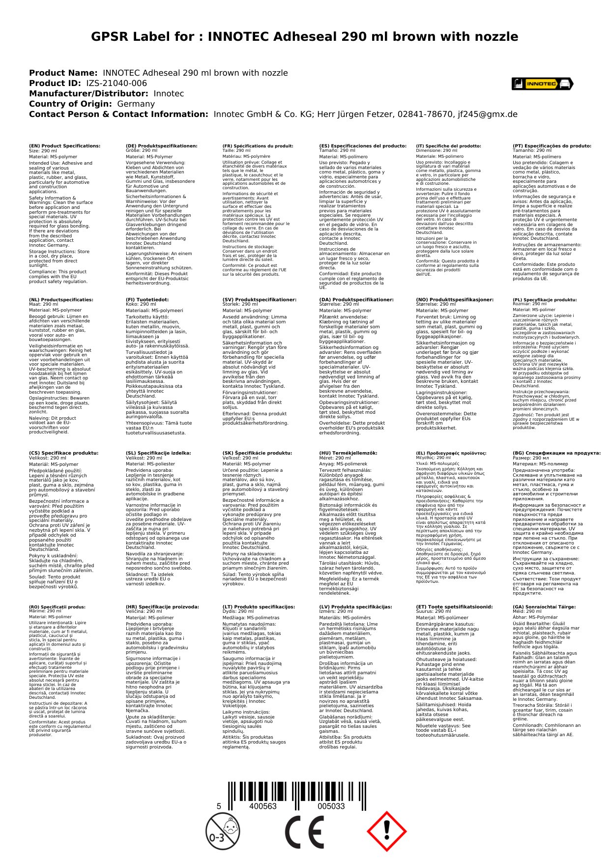 Innotec Adheseal 290 ml Kartusche braun
