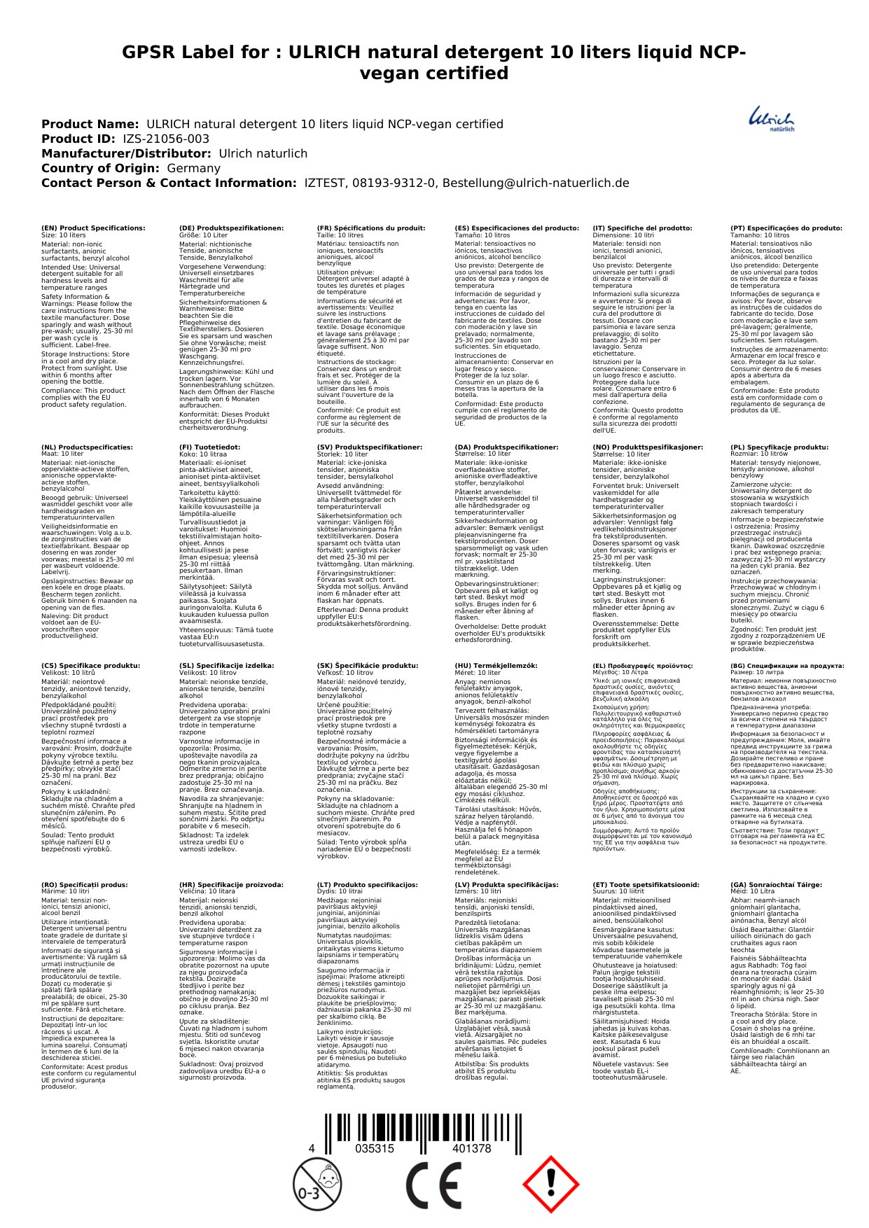 ULRICH natürlich Waschmittel 10 Liter flüssig NCP-vegan zertifiziert