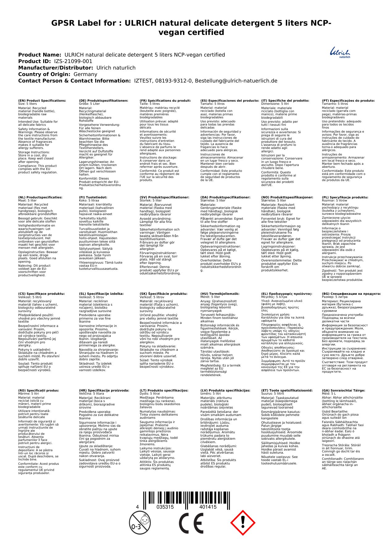 ULRICH natürlich Feinwaschmittel 5 Liter NCP-vegan zertifiziert