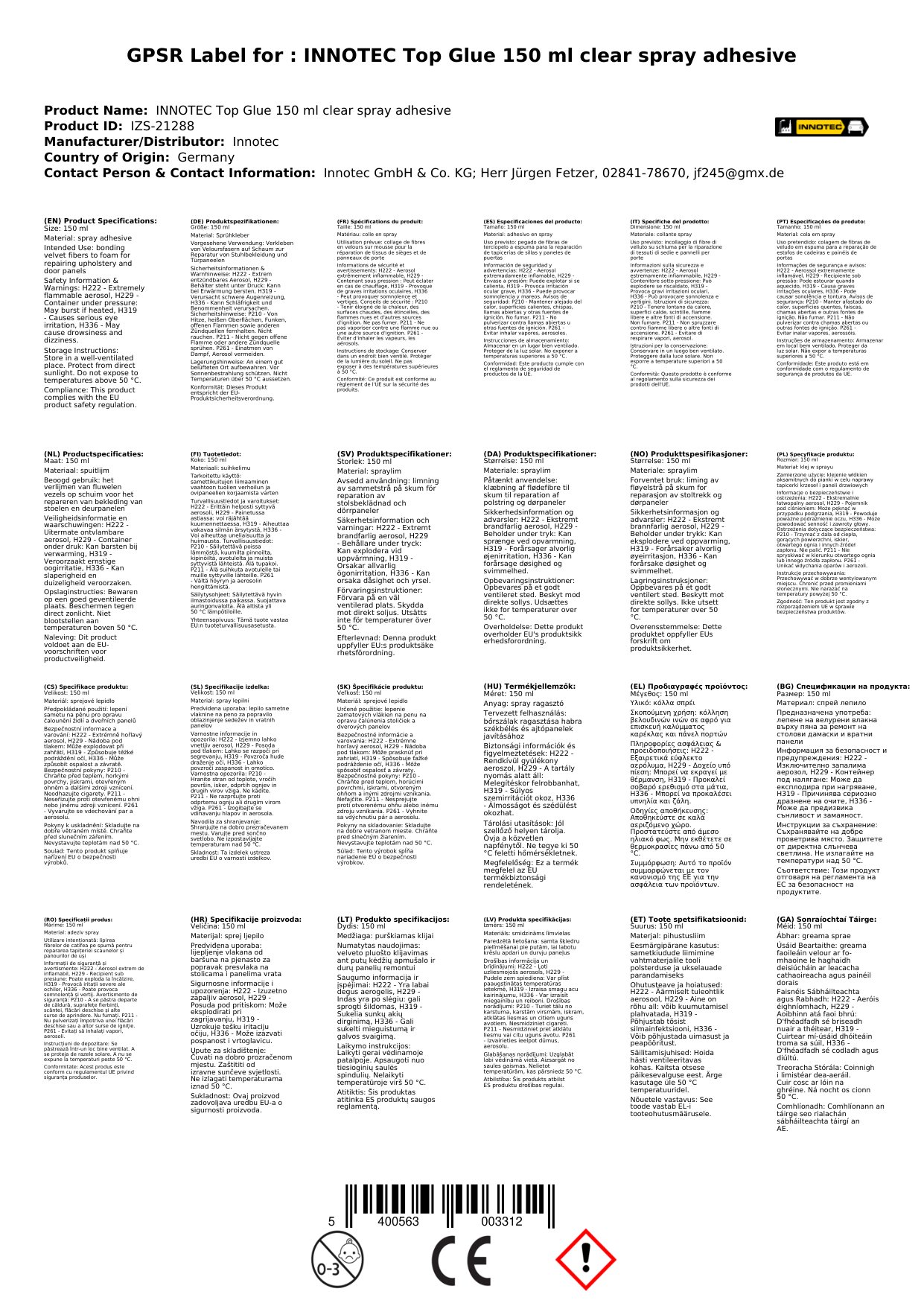 Innotec Top Glue Sprühkleber 150 ml Aerosol