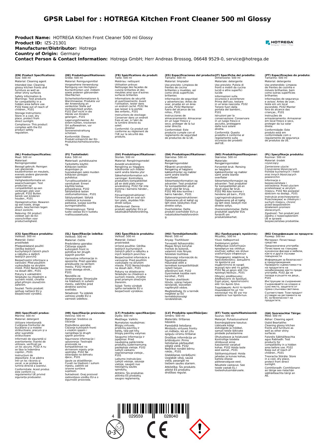Stellen Sie eine Frage, um mehr über das Produkt zu erfahrenHotrega Küchenfronten Reiniger 500 ml hochglanz