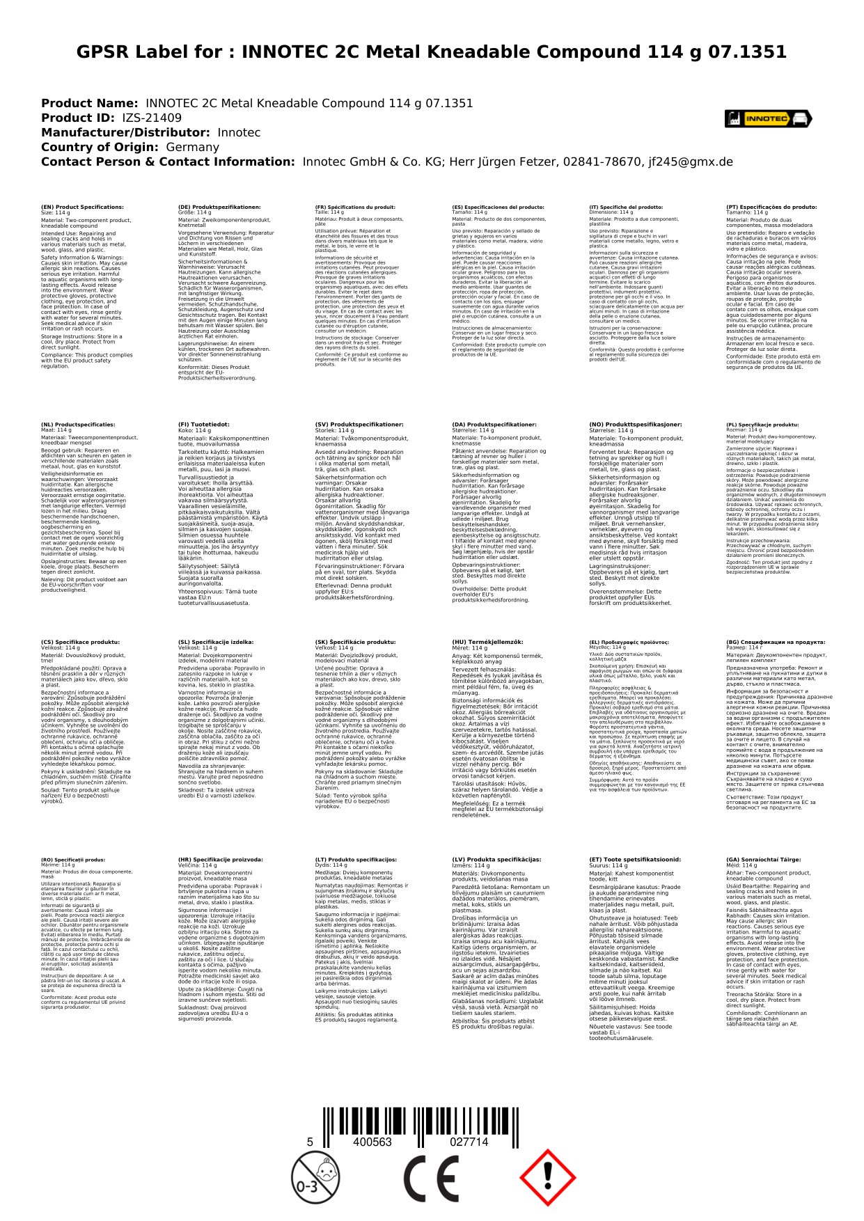 INNOTEC 2C Metall Knetmetall 114 g 07.1351
