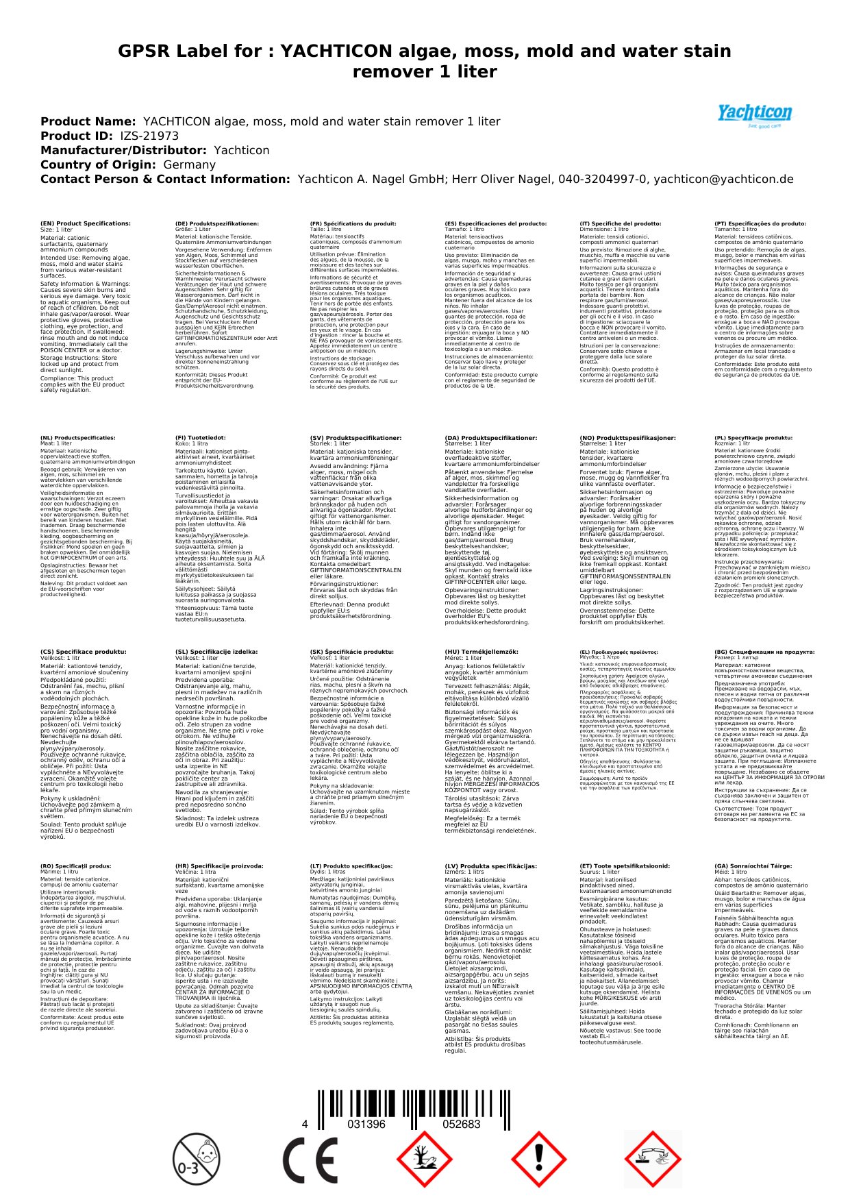 Yachticon Algen, Moos, Schimmel- und Stockflecken Entferner 1000 ml